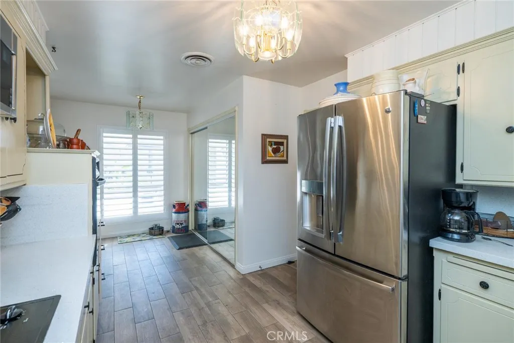 Prime Hemet location with standout value. This updated single-level home offers a bright, open floor plan with fresh interior paint and upgraded laminate flooring. The spacious kitchen features quartz countertops, abundant storage, and an electric cooktop, flowing into a formal dining area that opens up to a welcoming living room with a gas fireplace. Key upgrades include leased solar for energy efficiency, newer HVAC, new dishwasher and plantation shutters throughout. A spacious oversized garage provides excellent storage. The backyard delivers comfortable outdoor living with lush foliage including fruit trees, a raised patio and multiple shaded areas created by overhead patio covers with sail shades that keep the space cool all summer. Don't miss this upgraded property in a desirable neighborhood. It is truly worth a look.