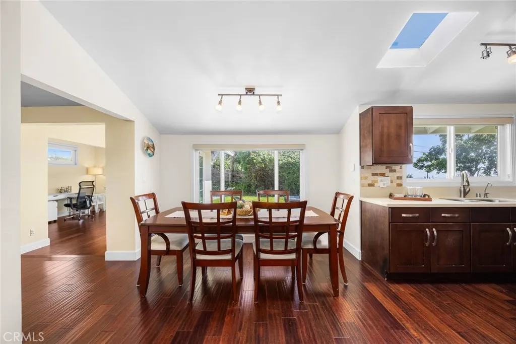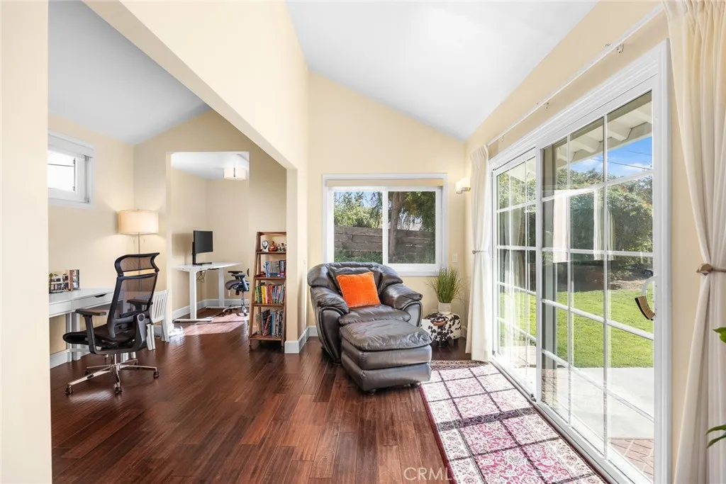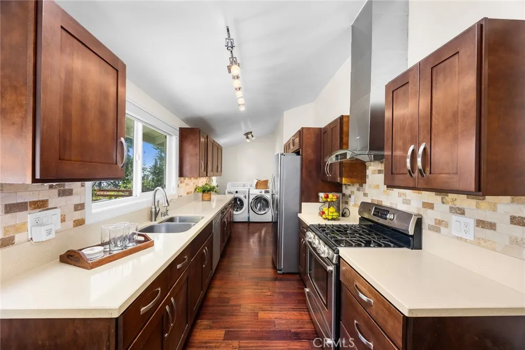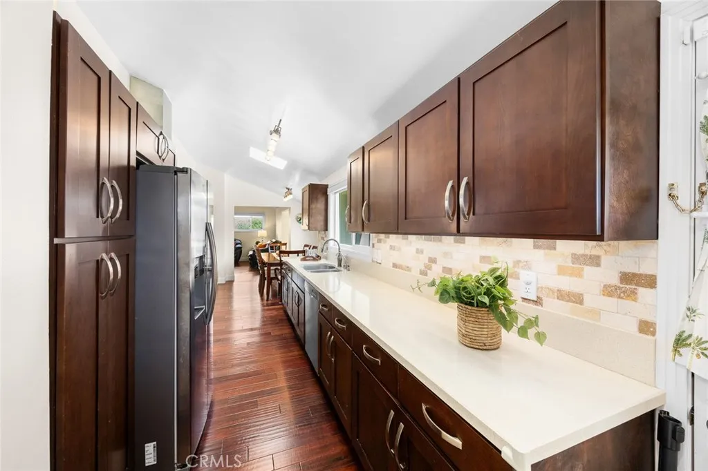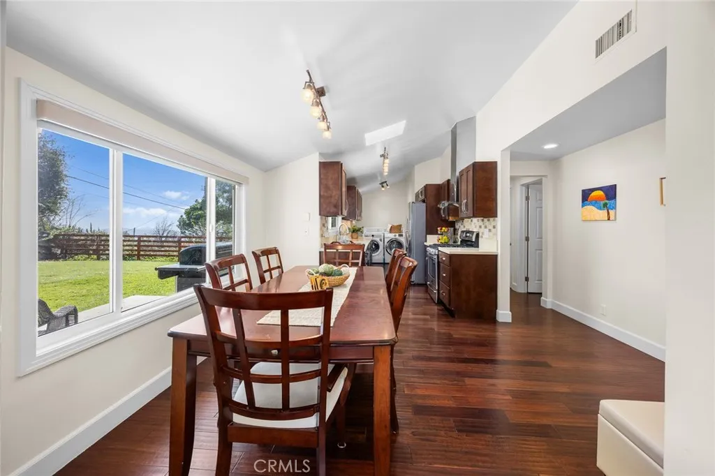 A charming 3-bedroom 2-bath home situated in the desirable and serene area of La Crescenta, surrounded by beautiful mountain and valley views. The light-filled living room with high ceilings & a fireplace, creating a warm & inviting atmosphere. A separate step-down family room offers additional living space & includes a study nook, ideal for an office or homework area, & a sliding glass door opens to the backyard. The formal dining area sits adjacent to the kitchen and has large picturesque window overlooking the lush backyard. The updated kitchen offers granite countertops, dark wood cabinetry with hardware, stainless steel appliances, a vented range hood, & a skylight that fills the space with natural light. The laundry area is conveniently located next to the kitchen & has a side door providing direct access to the backyard. The primary suite has its own private full bath with a glass-enclosed tub/shower combination and tile surround. Two additional bedrooms share a hallway full bath, also with a glass-enclosed tub/shower & tile surround. The backyard is peaceful & serene, with lush landscaping, a patio area & beautiful valley and mountain views. The generous flat lot offers space for outdoor entertaining, gardening, or future possibilities. 2-car garage with automatic opener & driveway with pavers providing extra parking. Additional features include copper plumbing, dual-pane windows, ceiling fans in the living room & all bedrooms, wood flooring in the main living areas, tile flooring in bathrooms, & central air & heat. Recent improvements include: a new Class A roof (T