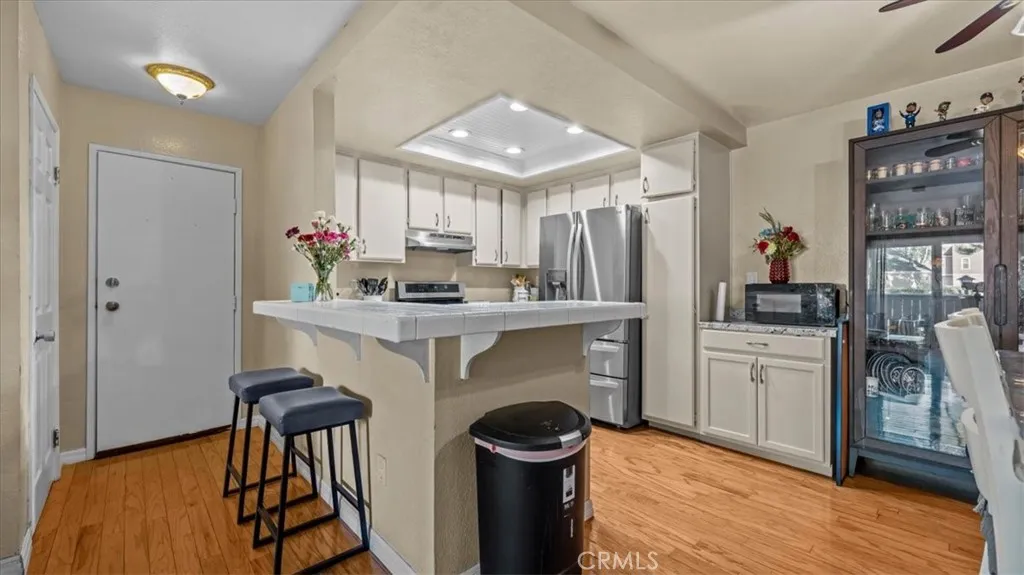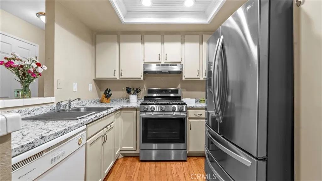 Rare Single-Story Condominium in Gated Briar Oaks!!!!Welcome home to this available downstairs, single-story 2-bedroom, 2-bath condo in the highly desirable gated Briar Oaks community. Featuring an attached single-car garage with direct access. Inside, youll find a spacious open-concept layout with hardwood floors throughout, newer central A/C and heating, and a beautifully upgraded kitchen. The generously sized primary suite includes an upgraded bathroom and a large walk-in closet with bonus storage. Both bathrooms have been tastefully upgraded, and the inside laundry adds everyday convenience. Additional highlights include ceiling fans, abundant storage, garage shelving, and a private covered patio perfect for relaxing. Enjoy resort-style community amenities including a pool and spa, ample guest parking. Ideally located near shopping, restaurants, and Stanton Central Park.