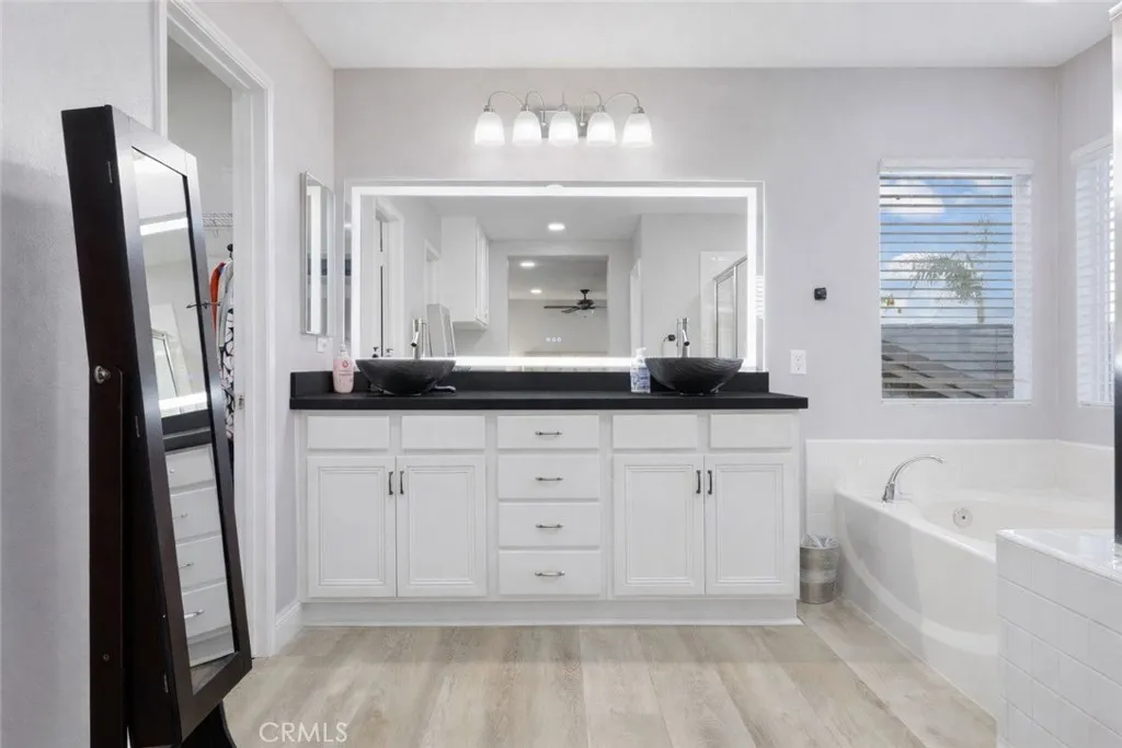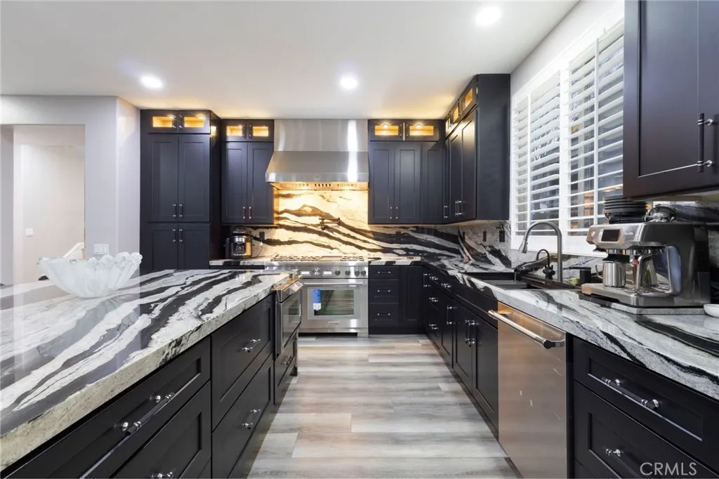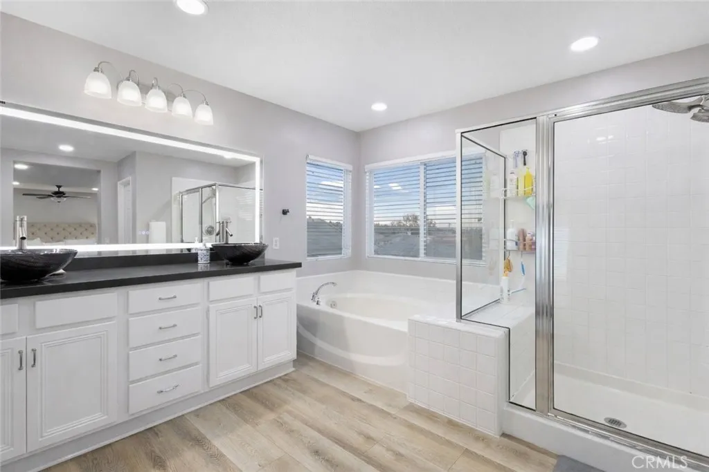 Designed for modern living & elevated comfort, 4219 Floyd Drive showcases extensive upgrades, refined finishes, & expansive living spaces in one of Coronas established residential settings. This 5-bedroom, 4-bath residence offers a thoughtful blend of functionality, efficiency, & style across a massively spacious floor plan. At the heart of the home is a fully upgraded chef's kitchen featuring granite countertops, custom shaker cabinetry with integrated LED lighting, & a suite of top-of-the-line Thermador appliances, including an 8-burner stove with 48 hood, a dishwasher, and 60 refrigerator/freezer configuration. Professional MicroDrawer microwave is fitted into the island to compliment commercial appliances. Additional kitchen enhancements include a pot filler, instant hot water and purified water at the sink, and a built-in glass rinser, adding both convenience and a polished, luxury feel. The interior has been extensively refreshed with new paint, new baseboards, luxury vinyl plank flooring with added padding for luxury comfort, and updated recessed lighting throughout the entire home. Bathrooms feature quartz countertops, updated sinks, modern fixtures, & refreshed shower heads, including a well-appointed primary bath with very spacious dual his & her closets. Upstairs, a large open loft provides flexible space ideal for a media room, home office, or secondary living area. This space could also eventually be turned into another HUGE master suite, should the new buyer wish it. The primary bedroom retreat includes a private balcony offering sweeping views over Corona whi