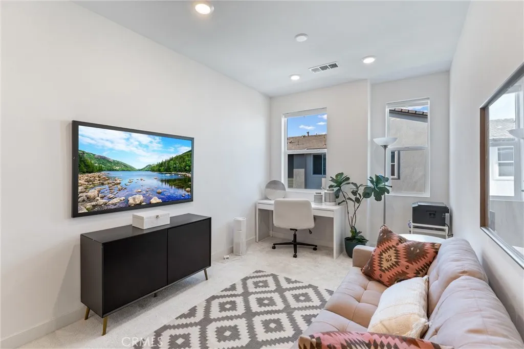 Premium corner-unit home in Irvines highly sought-after Solis Park neighborhood of Great Park featuring 4 bedrooms + loft and 3.5 bathrooms. This thoughtfully designed floor plan offers flexibility for multi-generational living, guests, or a dedicated work-from-home space, while the corner location provides added privacy, abundant natural light, and open neighborhood views. The stylish kitchen features white shaker cabinetry, stainless steel appliances, and a large walk-in pantry, opening to bright living spaces ideal for both everyday living and entertaining. Enjoy modern efficiency and convenience with paid-off solar and Smart Home upgrades including a Ring doorbell, smart door locks, whole-house fan, tankless water heater, and EV charging pre-wire. Located within the award-winning Irvine Unified School District, the home is walking distance to Solis Park K8 and Portola High School. Residents also enjoy access to Great Parks exceptional resort-style amenities, including pools, parks, playgrounds, sports courts, and scenic walking and biking trails. Rare opportunity to own a premium corner home in one of Irvines most desirable master-planned communities.