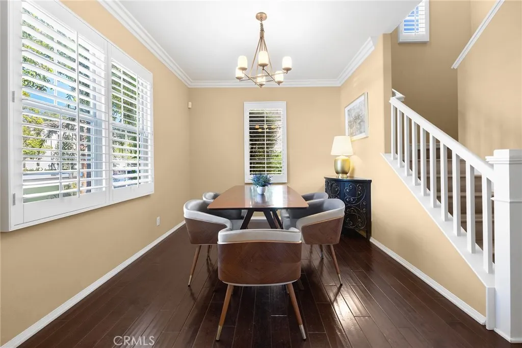 Welcome to this exceptional 4-bedroom, 3-bath residence offering comfort, functionality, and outstanding value. The flexible floor plan includes a first-floor living room that may be used as a fourth bedroom with a full bath, fully permitted for peace of mind. Upon entry, the home features a bright living room on the right and a formal dining room on the left, creating a welcoming flow for gatherings and everyday living. Beyond the dining room lies the kitchen, which opens to a private backyard patioan inviting retreat ideal for outdoor dining or quiet relaxation. Wood flooring runs throughout the home, adding warmth and continuity. Upstairs, youll find three spacious bedrooms, thoughtfully designed to meet diverse needs. The primary suite offers a generous walk-in closet and an en-suite bath, creating a serene private space. Two additional bedrooms complete the second level, perfect for family, guests, or office use. The location is highly desirable, with convenient proximity to Woodbury Town Center for shopping and dining, as well as the Great Park Sports Complex for recreation and community activities. With its versatile layout, modern finishes, and prime setting, this home presents an opportunity not to be missed.