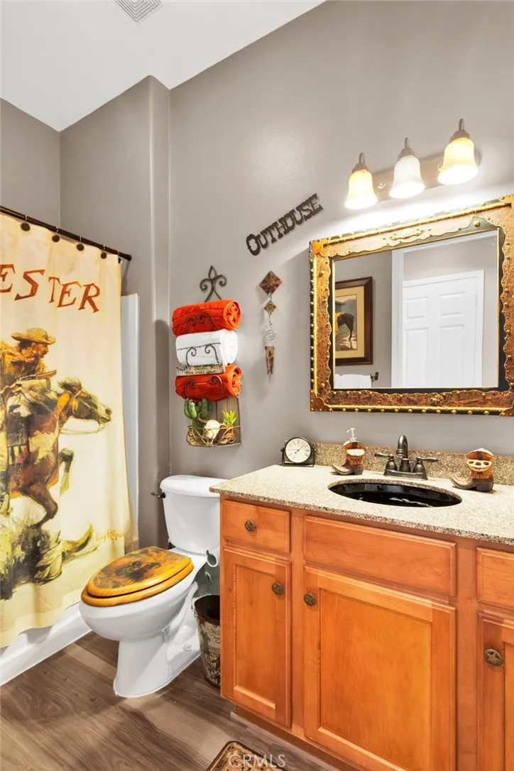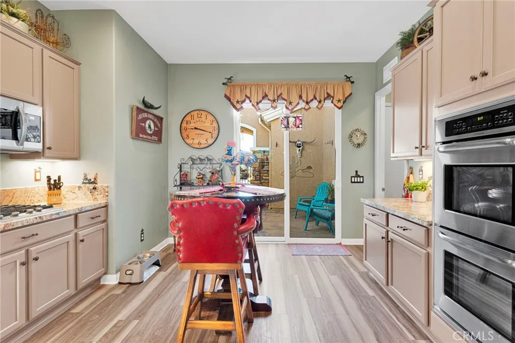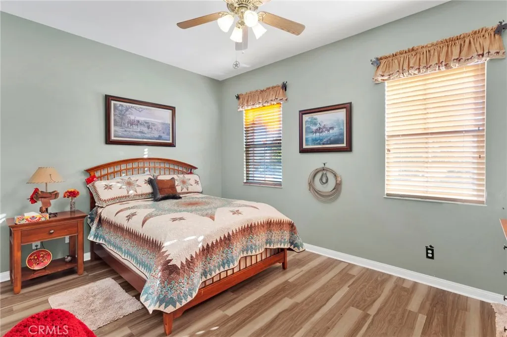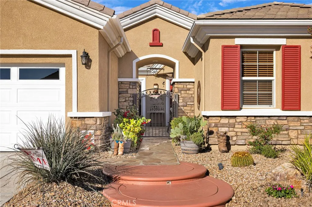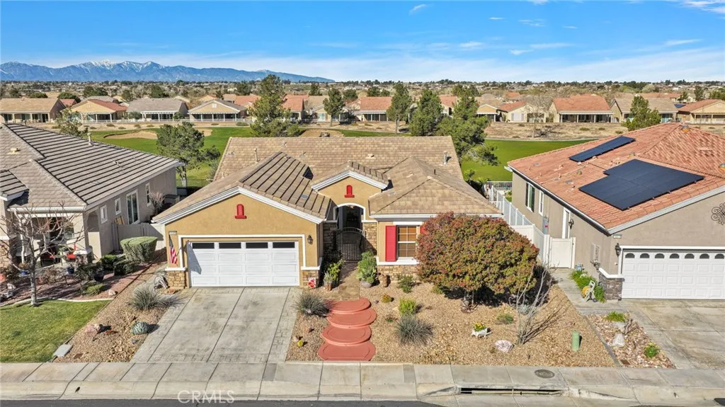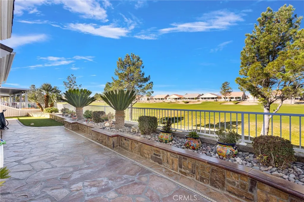 Welcome home to this stunning Magnolia model located on the golf course in the highly sought-after 55+ community of Sun City by Del Webb in Apple Valley. Enjoy breathtaking views of the fairway and surrounding mountains from this beautifully upgraded home filled with character and country charm. Inside, you'll find wood flooring throughout, offering both durability and easy maintenance. The kitchen is the heart of the home, and features upgraded granite countertops, a custom copper sink with a modern faucet, stainless steel appliances, unique pendant lighting, and wood-toned plantation shutters(throughout). The open layout makes it perfect for everyday living and entertaining. This split floor plan offers privacy and functionality. The oversized primary suite enjoys golf-course views and includes a spacious ensuite bathroom with a dual-sink vanity, soaking tub, walk-in shower, private water closet, and large walk-in closet. On the opposite side of the home, you'll find a flex room/den that can easily serve as an office, craft room, or potential third bedroom, along with a spacious secondary bedroom with a walk-in closet. The living room is warm and inviting, highlighted by a distinctive copper-and-alder-wood fireplace with a raised hearth and built-in sconce lighting, creating the perfect cozy gathering space. The private front courtyard is ideal for al fresco dining and truly feels like an extension of the kitchenperfect for hosting family and friends. Relax on the covered backyard patio while enjoying golf course views. The professionally sealed flagstone surface and low-