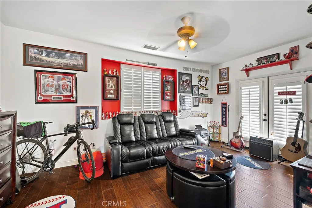 Situated on one of the largest lots in the community, this beautifully maintained estate offers an exceptional blend of space, comfort, and thoughtful design. With 5 bedroomsincluding an expansive room that can serve as a bonus roomplus an additional downstairs room ideal for an office or den, and a built-in desk area upstairs, this home provides remarkable flexibility for work, study, and multi-generational living. Pride of ownership is evident throughout. The open floor plan features soaring ceilings and abundant natural light, creating a bright and inviting atmosphere. Upon entry, youll immediately notice the custom touches, including a gourmet kitchen equipped with stainless steel Wolf and Sub-Zero appliances, generous cabinetry, and a seamless connection to the family room with a built-in media center. A convenient downstairs bedroom and full bathroomwith direct access to the backyardmake hosting guests effortless, especially for those enjoying the sparkling pebble-tech pool. Upstairs, the spacious primary suite offers dual vanities and a large walk-in closet, complemented by generously sized secondary bedrooms. Additional upgrades include a newer tankless water heater, a water softener system, and well-maintained systems throughout. The expansive backyard is an entertainers delight, offering ample space to relax, dine, and enjoy the quintessential California lifestyle. This home truly has it allspace, style, functionality, and a premier location.