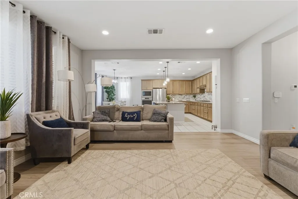 Rare larger lot within gated Harvest at The Preserve at Chino! Positioned on one of the communitys largest 5,766 sq ft lots, this newer 4-bedroom, 3-bath home offers a highly desirable multigenerational floor plan, premium living space, and resort-style amenities in one of Chinos most sought-after neighborhoods. 8841 Celebration Street features todays most requested layout with a downstairs bedroom and full bathideal for extended family, guests, or a private home office. The bright open-concept design centers around a spacious gourmet kitchen with oversized island, granite countertops, abundant cabinetry, stainless steel appliances, and seamless connection to the dining and family room for both everyday comfort and entertaining. Upstairs, a generous loft adds valuable flexibility for a media room, study area, playroom, or potential 5th bedroom conversion. The primary suite offers dual sinks, soaking tub, separate shower, and large walk-in closet. Additional highlights include upstairs laundry, solar, tankless water heater, smart-home functionality, and energy-efficient construction. The larger backyard provides outdoor space rarely found in Harvest, with room to relax, entertain, garden, or personalize your own retreat. Residents enjoy pools, spa, fitness center, clubhouse, tennis courts, pickleball courts, BBQ areas, parks, gardens, and walking trails. Conveniently located near shopping, dining, Town Center, freeway access, and highly regarded Chino Valley Unified School District schools including Chino Hills High School, this home represents one of the strongest value opp