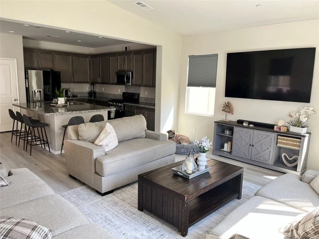 Wow! Wow! Wow! What a Nice Newer Home located in the highly sought out Family Community of Audie Murphy Ranch! Great Curb Appeal, Home has 4 Bedrooms / 2.5 Bathrooms, Large Family Kitchen with Large Island, Pantry, Granite Countertops, Stainless Steel Appliances, Recessed Lighting, Laminate Flooring on lower level, 1 Bedroom and 1 Bathroom Downstairs, Open Floor Plan to include Family Room, Kitchen & Dining Area, Carpet on Stairs and Bedrooms, Go upstairs to a Good Size Loft Area, being used as a Den or Office area, Large Master Bedroom with Large Master Bathroom, also Bedrooms 2 & 3 located upstairs, 1 Full Bathroom and also includes a Large Laundry Room with Cabinets, and Sink, Central Air/Heat, Enjoy the Gorgeous open Backyard with Grass Area, Planters, Covered Patio Area to enjoy those nice evenings with Friends and Family, Nicely Landscaped Front and Back with a lot of external lighting in planters, 3 Car Garage with 2 parking spots, 3rd area is being used a Gym/Storage, Direct Access into Home, Home has set up a 220 Volt EV Charger Outlet, EV Ready, Solar is on Lease, Close to Everything that Menifee Area has to Offer, Entertainment Centers, Shopping, Restaurants, Schools, Parks, Sport Park, Freeways and so much more.... Don't miss out on this Home....