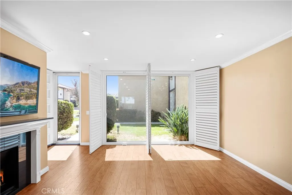Beautifully updated 2-bedroom + den (optional 3rd bedroom), 2.5-bath townhome-style condo offering approximately 1,475 sq ft in desirable West Torrance. This private, quiet end unit features two primary suites with vaulted ceilings, walk-in closets, and en-suite baths, plus a versatile den with its own bath. Upgrades include double-pane windows with a storm door, wood shutters, a remodeled kitchen with stainless steel appliances, an elegant marble fireplace, recessed lighting, smooth ceilings, an updated electrical panel, outlets, and wiring, and enhanced attic storage. Enjoy a cozy gas fireplace, open living and dining areas, and a beautifully updated private patio with tiled flooringperfect for entertaining. Additional highlights include two side-by-side parking spaces, storage, guest parking, and access to a community pool and spa, all within the award-winning West Torrance school district and close to shopping, dining, and the beach.