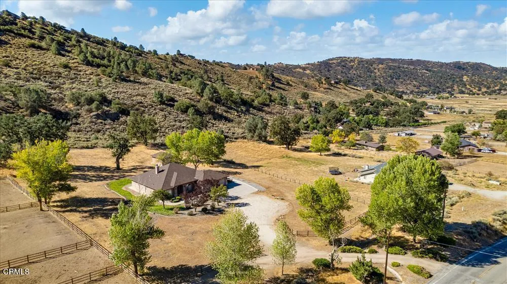 Your Mountain Sanctuary! Welcome to this mountain retreat in the gated community of Bear Valley Springs where space, comfort, and nature come together beautifully. This impressive 3BD/2.5BA home offers 2,861 SF of refined living on 3.43 acres with endless views and direct access to equestrian trails.A gracious foyer framed by graceful archways sets the tone, opening to a dedicated office on one side and a formal dining room on the other. Beyond, the heart of the home unfolds into a spacious open-concept living area featuring custom built-ins, a large tiled hearth, and a cozy pellet stove. The kitchen is both functional and elegant, showcasing granite countertops, stainless appliances (including a dual-drawer dishwasher), a walk-in pantry, breakfast nook, and an eat-at island with prep sink.The split-wing layout ensures privacy with two bedrooms and a full bath on one side, while the expansive primary suite on the other includes patio access, dual vanities, soaking tub, walk-in closet, and private yard entry.Enjoy outdoor living on the covered patio overlooking the mountains. The property also features a detached single-car garage with workshop area, oversized 3-car garage, RV parking, and room for horses. Additional amenities include new LVP flooring throughout, central A/C, portable generator connection, water softener, and rain gutters. Every room captures stunning natural vistas becoming a daily reminder that this is more than a home, it's a lifestyle.
