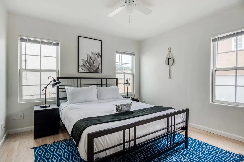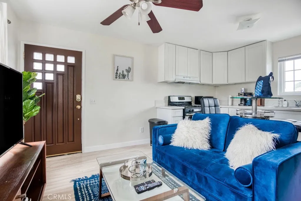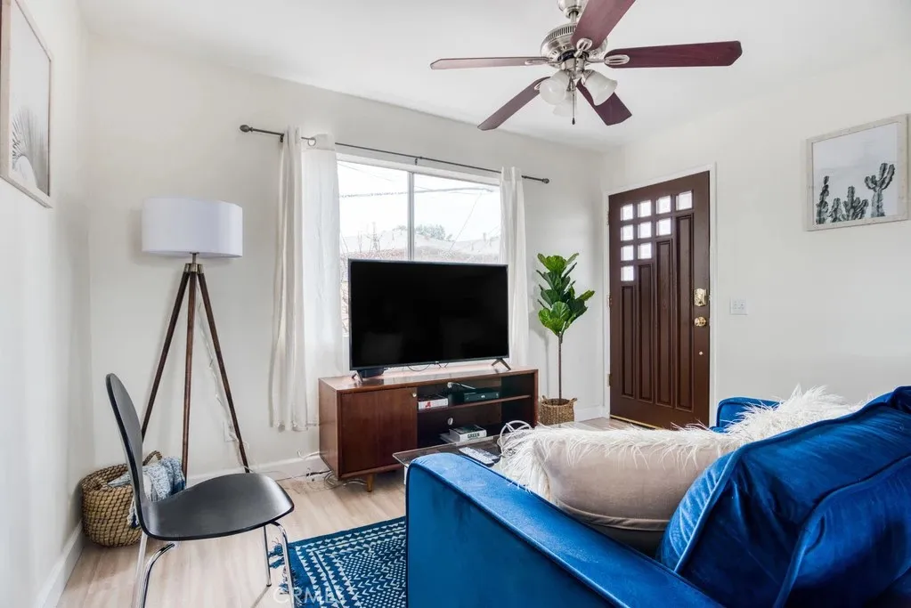 Welcome to 1582 S Ridgeley Drive, a versatile duplex property offering strong rental potential and flexible living options in the heart of Los Angeles. Situated on a 5,400 sq ft lot, the property consists of a front freestanding 3-bedroom, 2-bathroom home and a separate 1-bedroom, 1-bathroom rear unit, creating an attractive opportunity for investors or owner-occupants seeking additional income. The front residence spans approximately 1,804 sq ft and blends classic Spanish character with thoughtful updates. The living room is filled with natural light from beautiful arched windows, while a charming breakfast nook with matching arches provides a warm and inviting dining space. A later addition created a spacious primary suite with separate driveway access, offering excellent flexibility for multigenerational living or potential rental separation. The front home also enjoys a welcoming brick patio in the front yard, surrounded by mature landscaping and fruit trees. A two-car garage and large driveway provide ample off-street parking. The rear unit sits above the garage and offers approximately 550 sq ft with 1 bedroom and 1 bathroom. The unit includes its own private yard, one-car garage, and separately metered gas and electricity, allowing for true independence from the main home. Currently leased for $2,000 per month, the unit provides immediate rental income. Permit street parking adds additional convenience for residents and guests. Ideally positioned with quick access to the 10 Freeway, the property is just minutes from major Los Angeles attractions including The Grove,