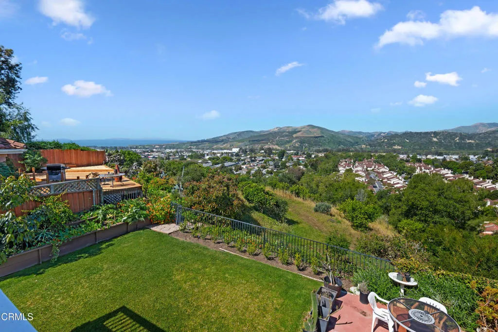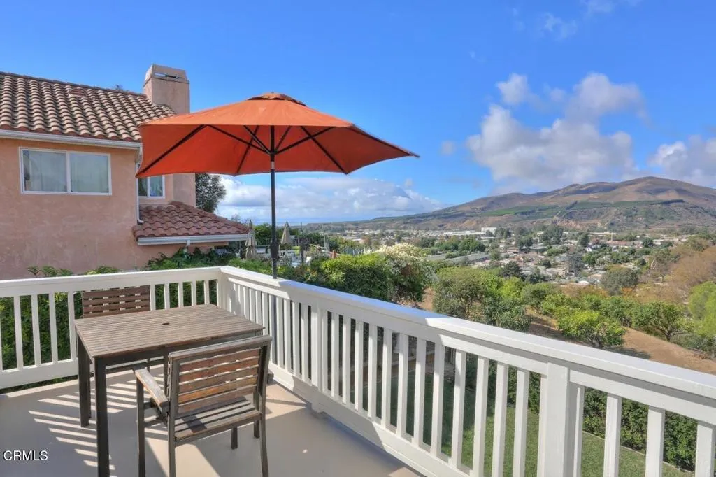 Brock Hills Beauty with Panoramic Views in West VenturaPerched high in the sought-after hills of West Ventura, this beautifully upgraded home offers breathtaking panoramic views of the mountains, ocean, Ventura River Valley, community orchard, and city below. This charming 3-bedroom, 2.5-bath residence spans approximately 1,633 square feet and showcases pride of ownership with over $175,000 in thoughtful remodeling and enhancements.Step inside to discover a light-filled interior featuring hardwood floors throughout both levels, soaring cathedral ceilings in the living room and primary bedroom, and elegant custom details including beam work, wrought iron railings, and designer tile accents. The completely remodeled kitchen is a standout, boasting quartz countertops, new appliances, and modern finishes perfect for everyday living and entertaining.All three bedrooms are conveniently located upstairs, including an inviting primary suite designed for comfort and relaxation with a custom shower and spa-like ambiance. A secondary bedroom features a private balcony and sliding doors framing beautiful ocean views--an ideal setting for a home office or creative space.The private backyard offers a peaceful retreat with scenic vistas, a covered patio with stamped concrete, raised-bed vegetable garden, and included BBQ--perfect for outdoor dining and gatherings. Additional highlights include dual-pane windows, air conditioning, an expanded dining area, and a newly epoxy-coated garage floor.Located in the desirable Brock Hills community, residents enjoy a low HOA fee of $165/month and ac