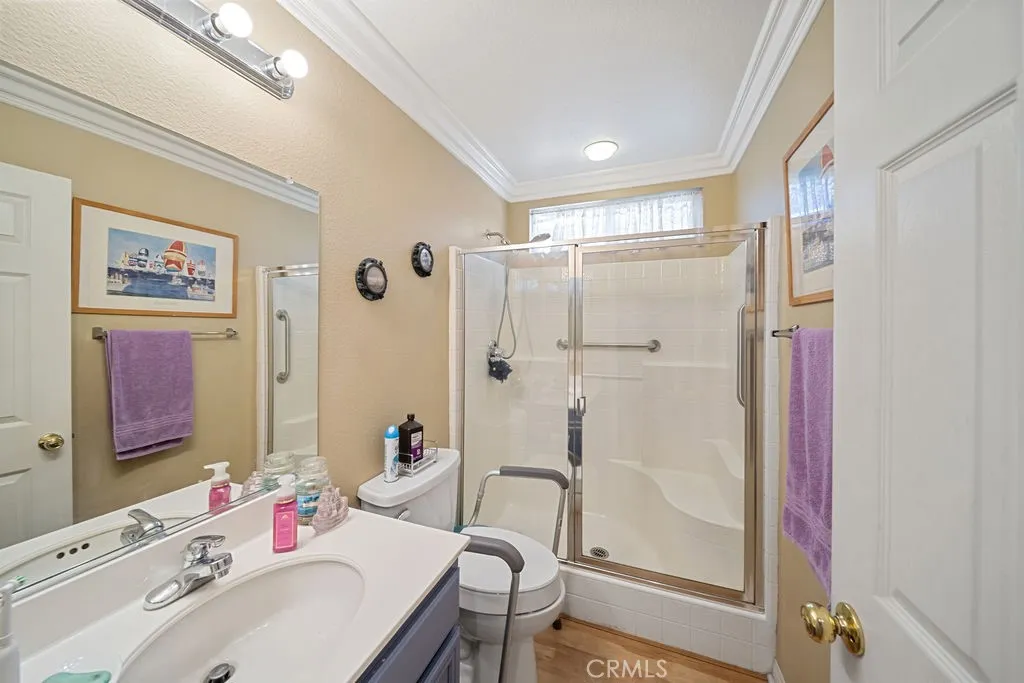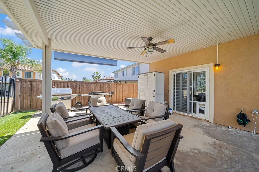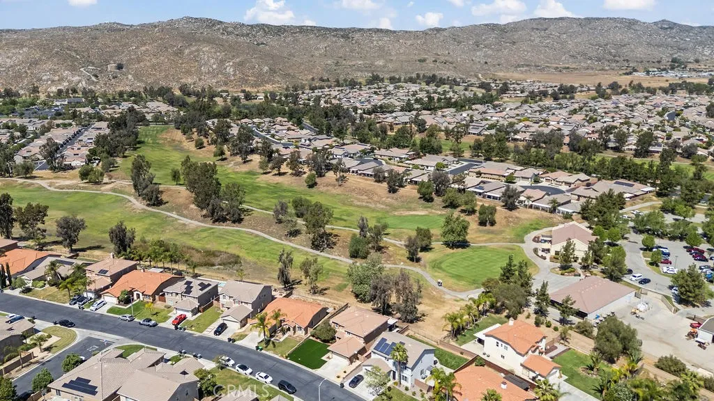 ~This property qualifies for a $20,000 grants not limited to first-time homebuyers, call for more info ~ Nestled in the scenic community of West Hemet, this beautifully manicured home sits on a generous lot backing directly to the golf course, offering both privacy and stunning views. Blending simple elegance with thoughtful design, this residence showcases one of the most versatile floor plans availableperfectly balancing formal living spaces with comfortable everyday areas. Featuring 5 spacious bedrooms and 3 full bathrooms, the home provides exceptional room to live, relax, and entertain. From the moment you step inside, youll appreciate the expansive feel created by 9-foot ceilings, abundant natural light, plantation shutters, and refined crown molding throughout. The kitchen is both stylish and functional, featuring stainless steel appliances, polished bullnose countertops, ample cabinetry, a large pantry, and a casual dining area ideal for everyday meals. Just beyond, the layout flows seamlessly to the laundry room and garage for added convenience. Downstairs, youll find a generously sized guest bedroom with its own private bath and shower, along with a formal living room or den and a separate entertainment space. Upstairs, a large loft anchors four additional bedrooms and a full bath, creating a perfect retreat for family or guests. The primary suite is a true sanctuarybright and airy with expansive windows that capture breathtaking views of the golf course and surrounding mountains. The ensuite bathroom features dual sinks, a soaking tub, a standalone shower, and a