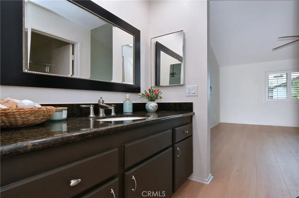 Perfectly situated in the heart of Warner Center, this light-filled tri-level interior end-unit townhome offers direct access to a two-car garage and a well-designed floor plan. The lower levels feature a spacious living room with soaring ceilings and a glass slider opening to a private patio, ideal for SoCal outdoor living, a dining room with wet bar, an oversized kitchen with additional dining or flex space, and a powder room. Upstairs, the generous primary suite features high ceilings and a walk-in closet, while the secondary bedroom includes its own ensuite full bath and walk-in closet. This eco-friendly home has more than $50,000 in recent improvements, so you can focus on personalizing it to make it your own. Upgrades completed within the past year include a new HVAC (heat pump) system, electrical panel with 220V car charger, outlets and switches, light fixtures and recessed lighting, double-pane windows, freshly painted interior walls, and new laminate flooring in the upstairs bedrooms. Additional improvements include fully owned solar panels, attic insulation, and a newer water heater installed within the past 6 to 8 years. The unit was also upgraded to newer earthquake standards in 1994, and the roof was recently redone by the HOA. HOA includes earthquake insurance, Spectrum cable & internet. The beautifully maintained gated complex offers a tennis court and a resort-style pool and spa surrounded by streams and mature trees, all just blocks from The Villages shopping and dining. This is an excellent opportunity to buy in Warner Center as it continues to evolve into
