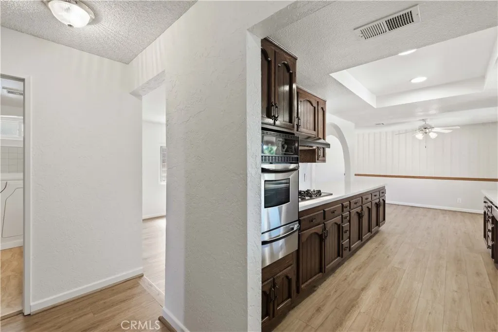 Welcome! This inviting single story home radiates country charm and modern updates throughout. Enjoy beautiful newer wood laminate flooring, plush new carpet, a remodeled kitchen. The remodeled kitchen features a Farmhouse-Style Sink, newer quartz countertops, stainless steel appliances and recessed overhead lighting. The Family/living room has a stone-faced wood burning fireplace. The home has newer, upgraded windows that flood the rooms with natural light (Living room windows have plantation shutters) and there is fresh paint in most of the rooms. Step out into the spacious 320-square-foot enclosed patioperfect for relaxing or entertaining. Also included are ceiling fans to enhance comfort and convenience as well as a water softener. Fresh landscaping in the front adds wonderful curb appeal and the back is low maintenance as well. The perimeter fencing is block-wall with secure metal side gates. Heres a nice little bonus, Lane Park is just a short walk where you can enjoy the open spaces, picnic tables and walking paths. This home blends classic warmth with contemporary styledon't miss your chance to make this 3 bedroom, 2 bath home yours! OH and no HOA. Buyer to verify all.