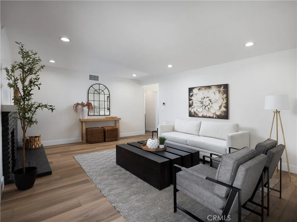 Welcome to 12592 Palomar West, Garden Grove a beautifully reimagined 4-bedroom, 2-bathroom single family detached residence where refined design, modern comfort, and effortless California living come together in one exceptional offering. Fully remodeled with a sophisticated eye for detail, this turnkey home showcases an elevated aesthetic throughout, blending warm natural textures with clean contemporary finishes. Step inside to discover living spaces filled with natural light, enhanced by wide-plank luxury vinyl plank flooring throughout, recessed lighting, newly updated fixtures, and a striking black brick fireplace that aceents the main living area with dramatic style. The easy-flowing floor plan creates a seamless connection between the living room, dining area, and kitchen, connected to the outdoors offering an ideal setting for both everyday living and stylish entertaining. The designer kitchen is a standout, thoughtfully appointed with new quartz countertops and backsplash, cabinetry refreshed in a rich designer hue, new sleek hardware, and new stainless steel appliances, including an oven with air fry feature and a touch on and off faucet in matte black finish. A dedicated dining area framed by sliding glass doors to the large backyard invites effortless indoor-outdoor living, while the layout offers both beauty and functionality. This home also features a dedicated interior laundry area with built-in shelving and additional storage, enhancing its polished design. Retreat to the spacious bedrooms, each thoughtfully refreshed with a bright, airy feel and versatile l
