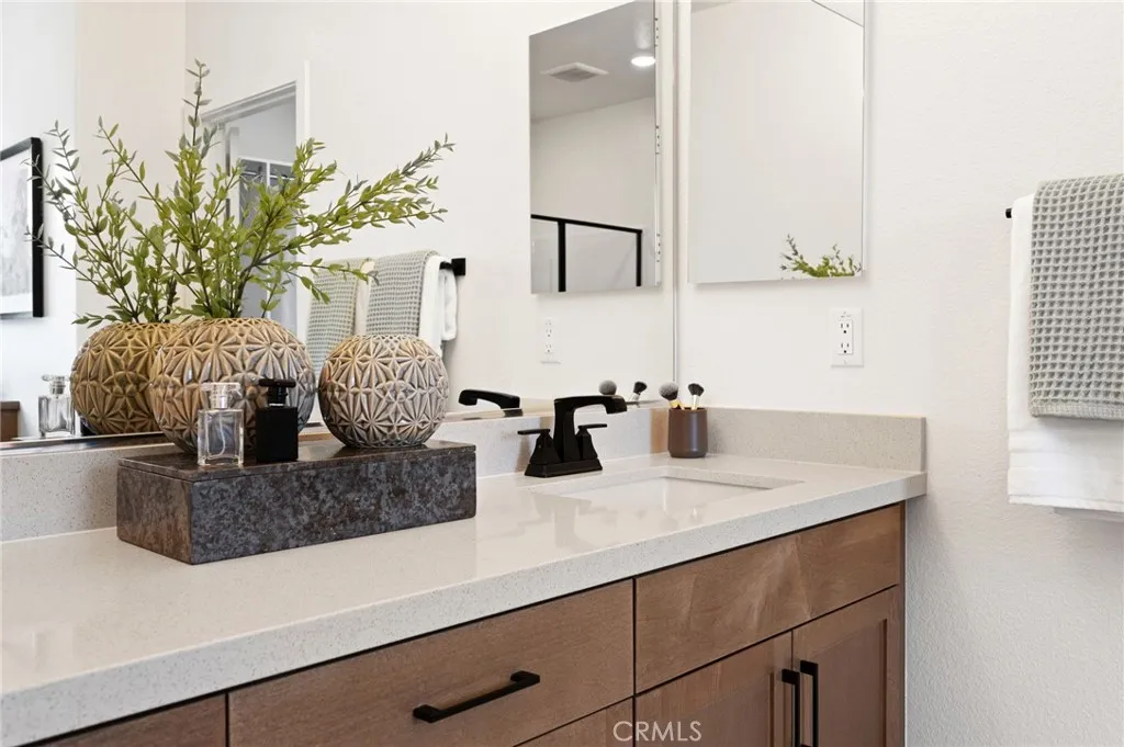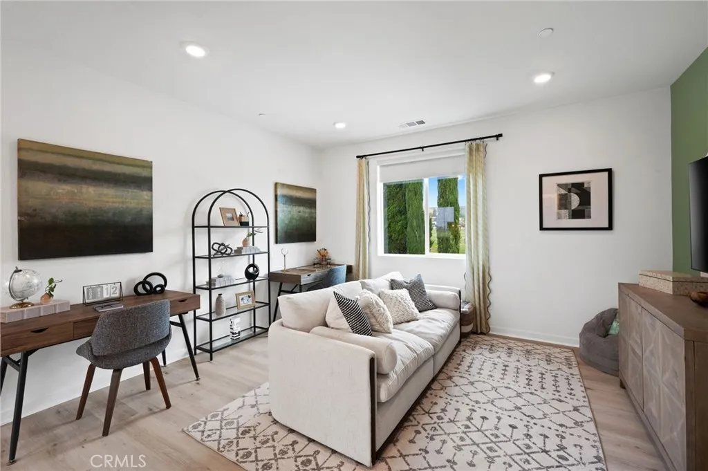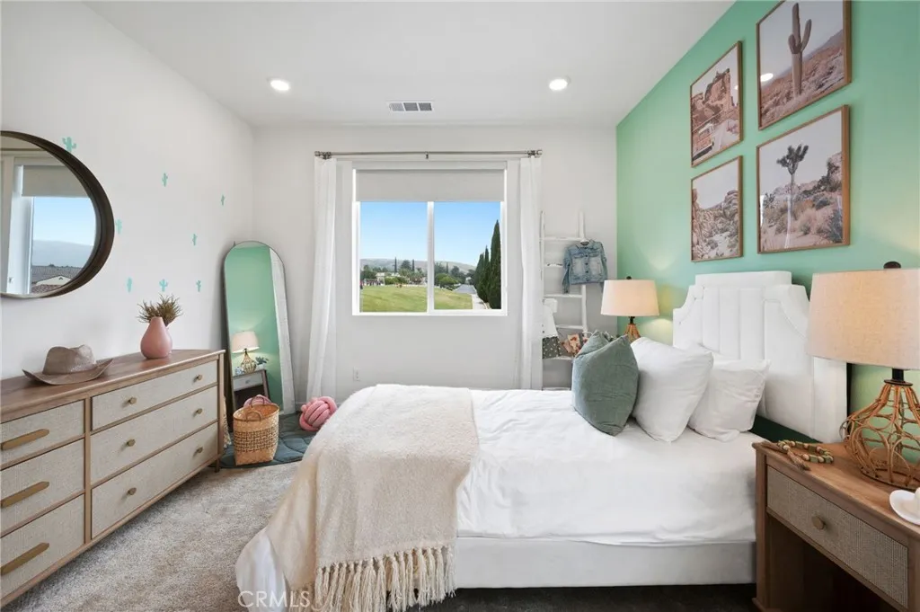 Experience the allure of this beautiful two story home, offering an inviting 2,556 sqft of open living space. With 4 bedrooms, 3 bathrooms, Loft, Ground floor bedroom, 3-car garage, located on a large ADU compatible & graded for RV parking, this residence perfectly blends comfort and functionality. Throughout this home, you'll find the distinctive features of CrestWood Communities. Marvel at the soaring 9-foot ceilings that create a sense of spaciousness and grandeur in every room. The kitchen shines with easy-care Quartz countertops adorned with a stylish 6-inch backsplash, providing both elegance and practicality. Embrace the latest advancements in energy-saving features, including a tankless water heater and LowE windows. These additions ensure an environmentally friendly and efficient home environment, helping you reduce your carbon footprint.