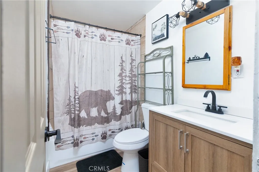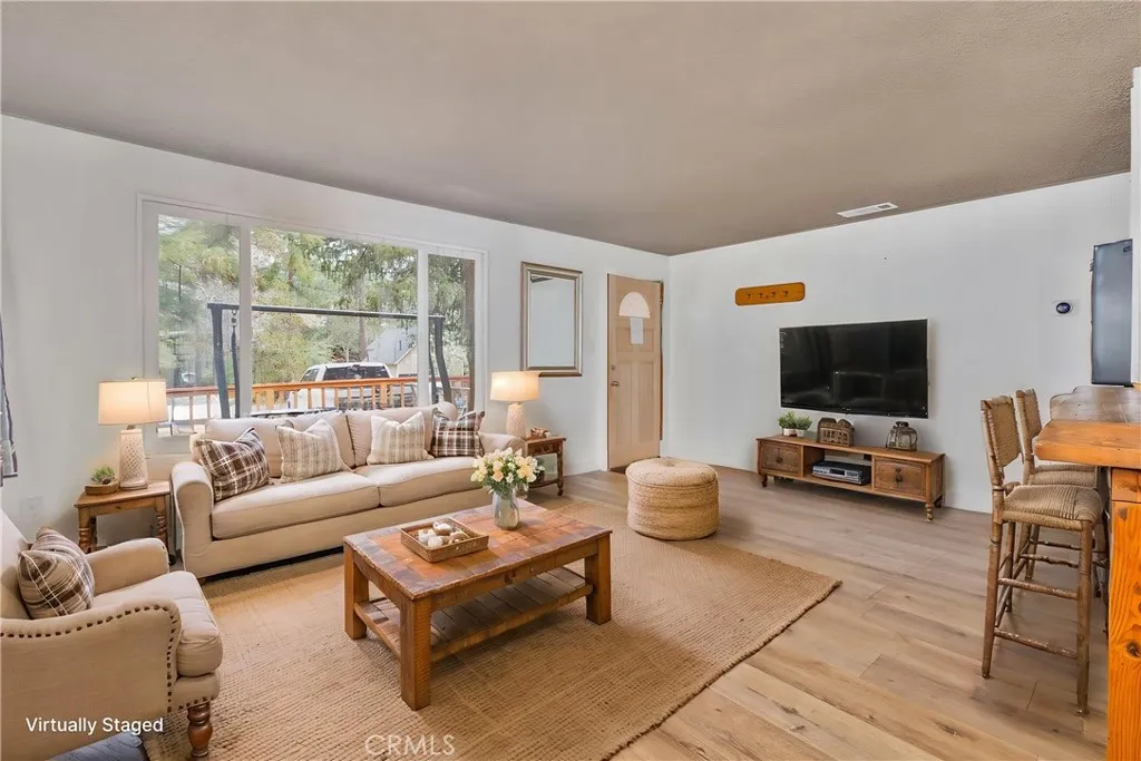 Excellent income and investment opportunitytwo cabins on one lot in the Sugarloaf area of Big Bear. The two-story 1BD/1BA cabin (approx. 600 sq ft) features the bedroom upstairs with kitchen, living room, and bathroom on the main level. Updates include new kitchen cabinets, a recently painted bathroom with new vanity, and a front patio. The single-story 2BD/1BA cabin (approx. 920 sq ft) offers refreshed kitchen cabinets, new bathroom vanity, fresh interior paint, a private front deck, and private indoor laundry. Both units share a large backyard that can be easily separated by fencing. Separate gas and electric meters; shared water meter. Parking for four cars in shared driveway. Situated on an approx. 8,015 sq ft lot, located 10 minutes from downtown Big Bear, near a fire station, post office, and high school, with seasonal snowfall. Suitable for short-term rental, long-term rental, or personal use. Buyer to verify all uses and regulations.