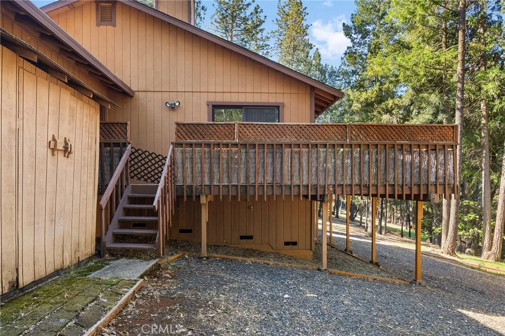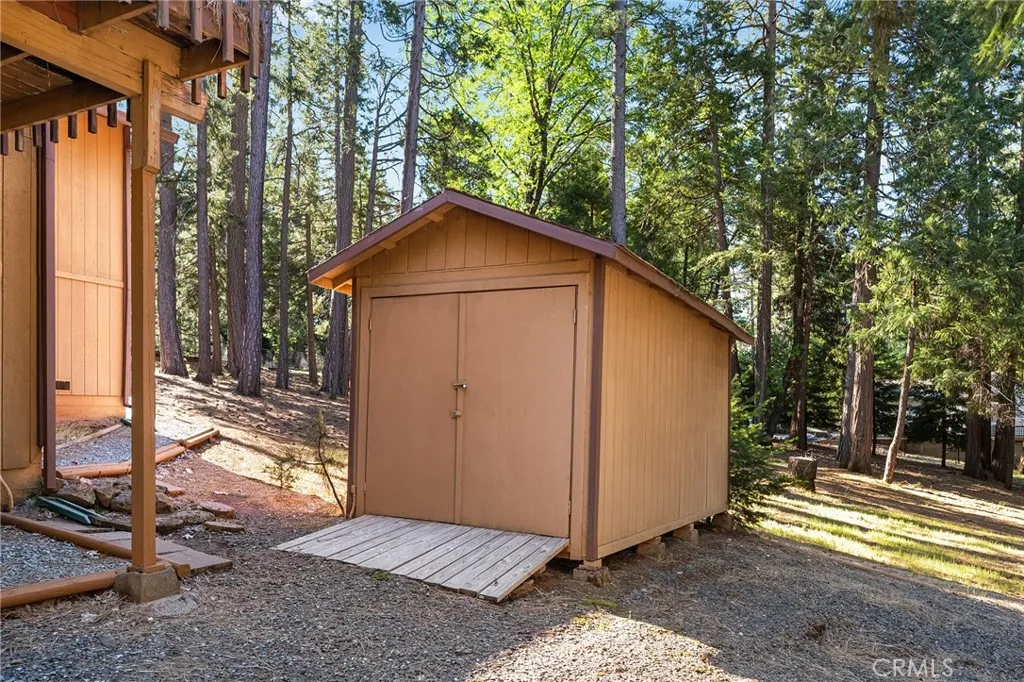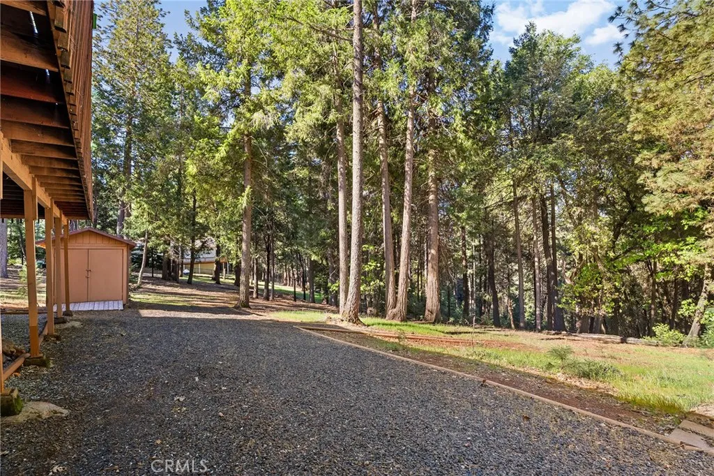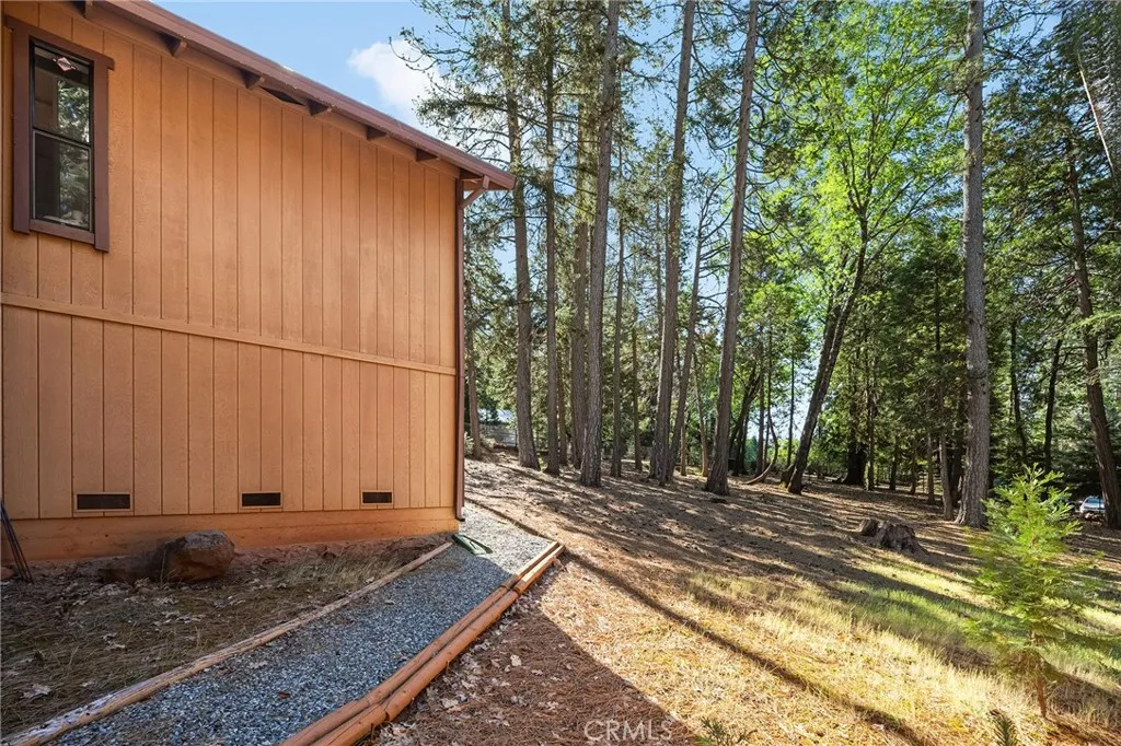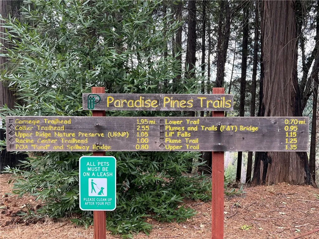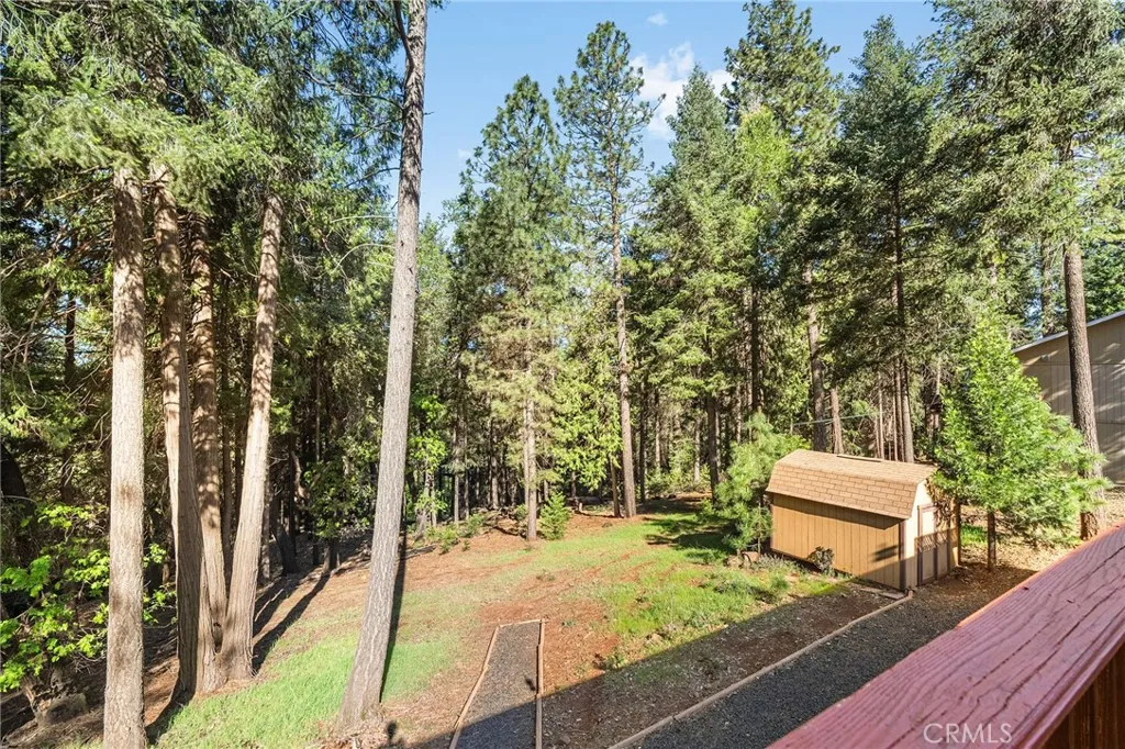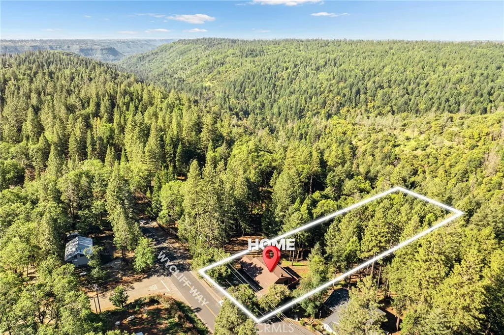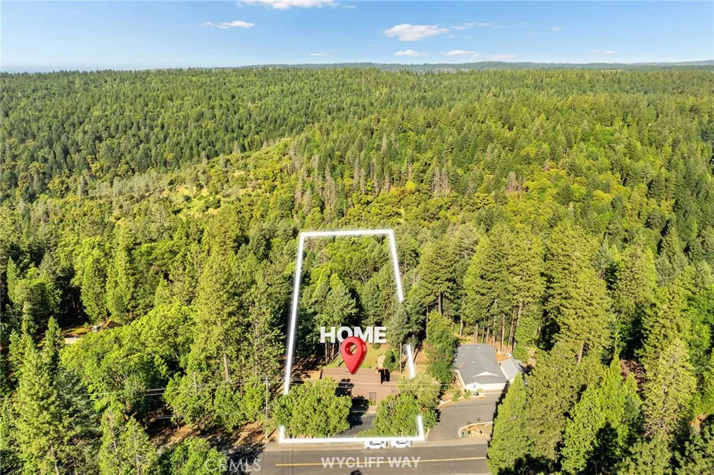 Amazing Custom Built home on 0.75 ACRES!! Fantastic views of the beautiful evergreen forest and canyon. Pride in ownership shows throughout with the home with a 2 YEAR OLD ROOF and a NEW HVAC System. This custom home was built with 2x6 WALLS! Location is within WALKING distance of the Paradise Pines Property Owners Association. Upon entering this 3 bedroom 2 bathroom home, through the custom stained-glass front door, you are greeted by a spacious custom ATRIUM that overlooks the living room. The living room features a custom 8x4ft window showcasing stunning Magalia views, a free standing wood burning fireplace set on tile with a custom rock backsplash, and a built-in bookcase accentuated by directional lighting. Sliding glass doors open to an over 500 sq ft entertaining deck, plenty of room for all your family and friends and perfect for enjoying the scenery. The kitchen is highlighted by a stained-glass light, plantation shutters over the sink and granite countertops. It includes all black appliances, featuring a glass cooktop and NEW double ovens. Adjacent to the kitchen is the laundry room, complete with a full-sized washer and dryer, overhead cabinets, and a pantry for extra storage. The dining area features a 6ft breakfast bar that looks into the kitchen and an etched glass window overlooking the entryway. Down the hallway, you will find a guest bathroom, two bedrooms, a linen closet, and the primary bedroom. Both bathrooms include cultured marble showers and matching countertops, creating a cohesive and polished look. The garage offers a bonus storage room, epoxy floo