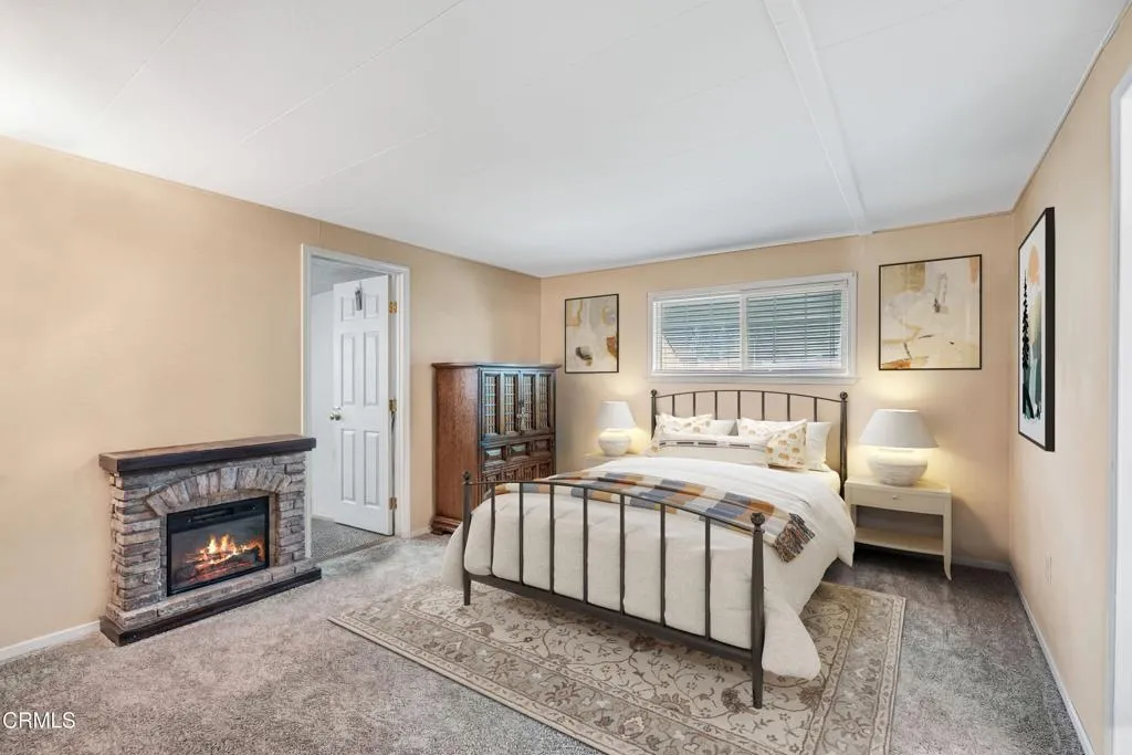 Welcome to this beautifully 2 bedroom, 2 bath home in the desirable Ventu Estates 55+ mobile home community. The spacious primary suite offers an oversized bedroom, a walk-in closet, and a tastefully remodeled bath featuring dual sinks, lighted cabinets, and a large mirrored vanity with built-in lighting.A generous attached sunroom, which can be used as a reading retreat, exercise space, and additional storage, adds even more versatility beyond the listed square footage. It is accessible from both the primary suite and the front porch.The extended width carport provides parking for up to three vehicles. Major improvements completed within the last 10 years include the roof, siding, kitchen, double pane windows, door, and a water heater.Ideally located just minutes from the freeway, shopping, and the Stagecoach Museum, this home offers comfort, convenience, and thoughtful upgrades throughout.