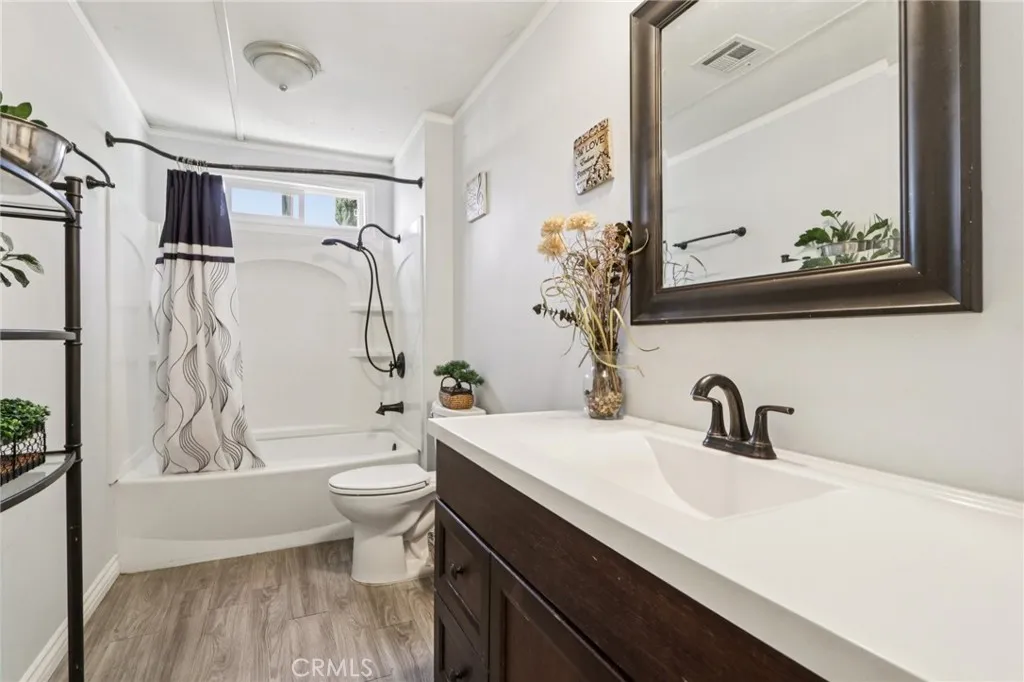 Style meets flexibility in this spacious 1,440 sq ft double-wide located in Rancho Hermosoone of Sylmars most sought-after communities, where pride of ownership and a welcoming neighborhood atmosphere set the tone for everyday living. A charming front porch creates the perfect spot for morning coffee or unwinding at the end of the day. Step inside and the open-concept layout immediately makes its presence known, with natural light pouring through multiple windows and laminate and tile flooring flowing throughout the living spaces for a clean, modern feel. The living room offers plenty of space to relax or gather, while the kitchen delivers both style and function with quartz countertops, grey cabinetry, abundant storage, custom lighting, and generous prep space. Its seamless connection to the dining and family areas makes entertaining easywhether its a casual dinner night or a lively weekend get-together. Two comfortable bedrooms provide restful retreats, each with ceiling fans for added comfort. The primary suite offers extra space to recharge, complete with dual closets and a beautifully remodeled private bathroom. A second remodeled bath serves the rest of the home with equal style. One of the standout features is the versatile bonus roomperfect as a home office, creative studio, workout space, or even a potential third bedroom depending on your needs. A conveniently located laundry room with ample storage keeps daily life running smoothly. Practical upgrades add peace of mind, including a newer HVAC system for year-round comfort, updated copper plumbing, newer insulatio