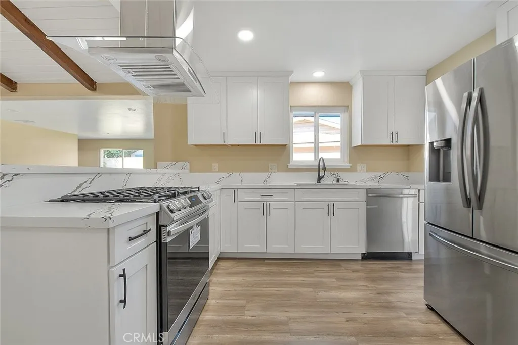 Stunning 7 bedroom, 4 bathroom home located in the heart of Ontario. This beautifully curated residence offers a spacious living area with high ceilings, a classic brick fireplace, and a seamless blend of recessed and natural lighting. The home features laminate flooring throughout and a full kitchen equipped with brand new appliances, a range hood, and plenty of storage space. Each bedroom is generously sized and includes built-in closets and shelving for added convenience. The home sits on a well-maintained lot with both front and backyard space that is perfect for relaxing or entertaining. In addition, a detached 1 bedroom, 1 bathroom ADU in the rear offers excellent flexibility for extended family, guests, or rental income. With charm, space, and versatility, this Ontario property is a rare find. Currently generating over $8,200/mo in rental income between the main house and the ADU.