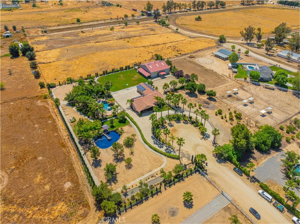 Welcome to a one of a kind private resort style estate tucked away on the outskirts of Temecula Wine country. Set on three beautifully maintained acres, this property offers a rare blend of privacy, space, and a lifestyle that truly stands apart. From the moment you arrive, youre greeted by your own private driveway with a roundabout entrance leading to a three car garage, along with plenty of room for guests, toys, or future expansion. Step outside and the property really comes to life. At the center is a resort style pool complete with a built in swim up bar, spa, and fireplace, creating the perfect setting to relax, entertain, and enjoy year round. Just beyond, a peaceful koi pond with a bridge adds a sense of calm, while the private garden and over 30 fruit trees including avocado, citrus, pomegranate, figs, and more bring beauty and function together in a way thats hard to find. The grounds are thoughtfully laid out to host at any level. Whether its weddings, retreats, large family gatherings, or simply enjoying your own space, you have expansive lawn areas, mature landscaping, and privacy like no other with no rear neighbors. Adding to the versatility, the property features a massive 3,600 plus square foot warehouse with two fully equipped ADUs, ideal for multi generational living, rental income, or extended stays. Inside, the home is designed for both comfort and connection, offering multiple living areas, a spacious kitchen built for gathering, and private suites that overlook the grounds. The bonus to bring it all together is property is all operated by well exclud