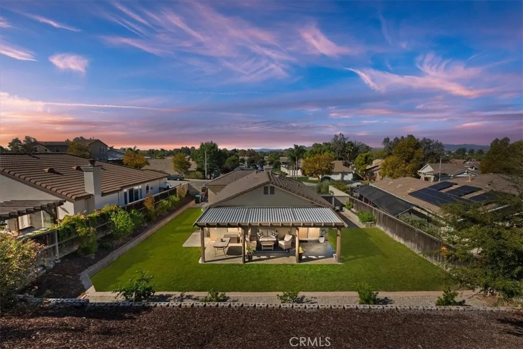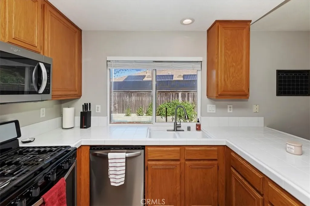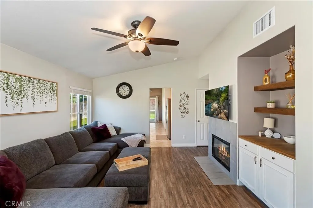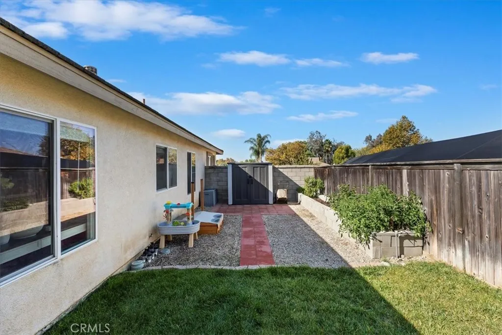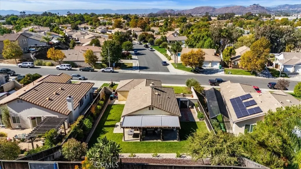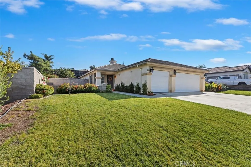 Welcome to this charming 3-bedroom, 2-bathroom single-story home located in the desirable Winchester/French Valley Area. This property is zoned for the highly-regarded Temecula Valley Unified School District, with assigned public schools including French Valley Elementary, Bella Vista Middle School, and Chaparral High School. This home is designed for both comfortable daily living and seamless entertaining. The interior features a large kitchen area with direct, easy access to the backyard, effectively extending your living space outdoors. The thoughtful layout ensures quiet relaxation, as the bedrooms are privately tucked away down a single hallway, minimizing distractions from gatherings in the living room. A Three Car Garage is a welcome compliment to the home, offering plenty of space for vehicles and additional storage. Outdoors, you will find an oversized yard that has been tastefully upgraded and professionally landscaped, providing abundant usable space perfect for entertaining or letting children play.