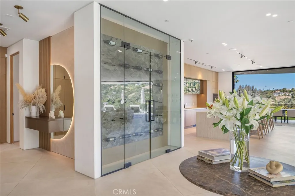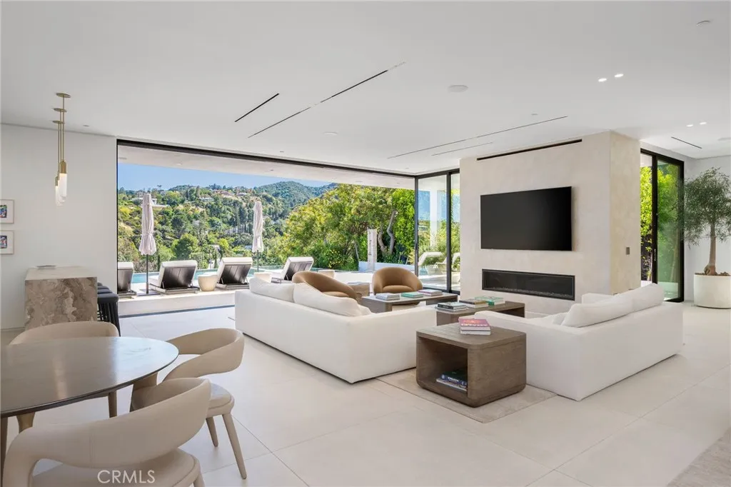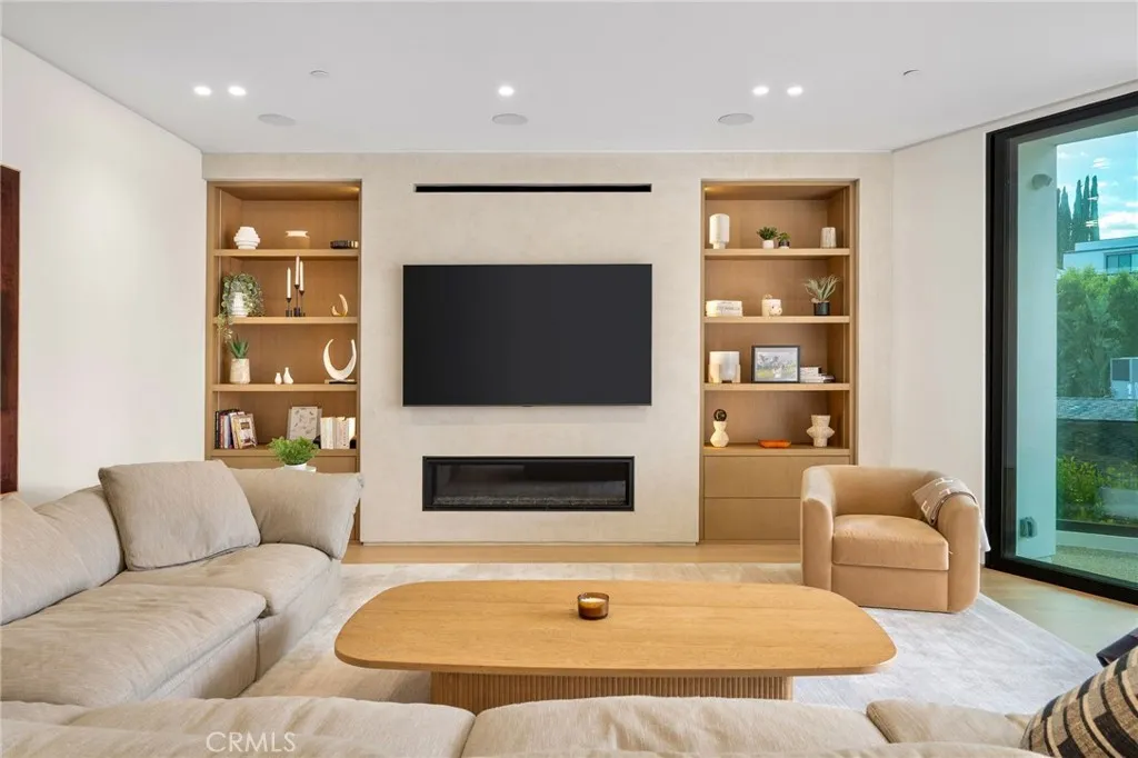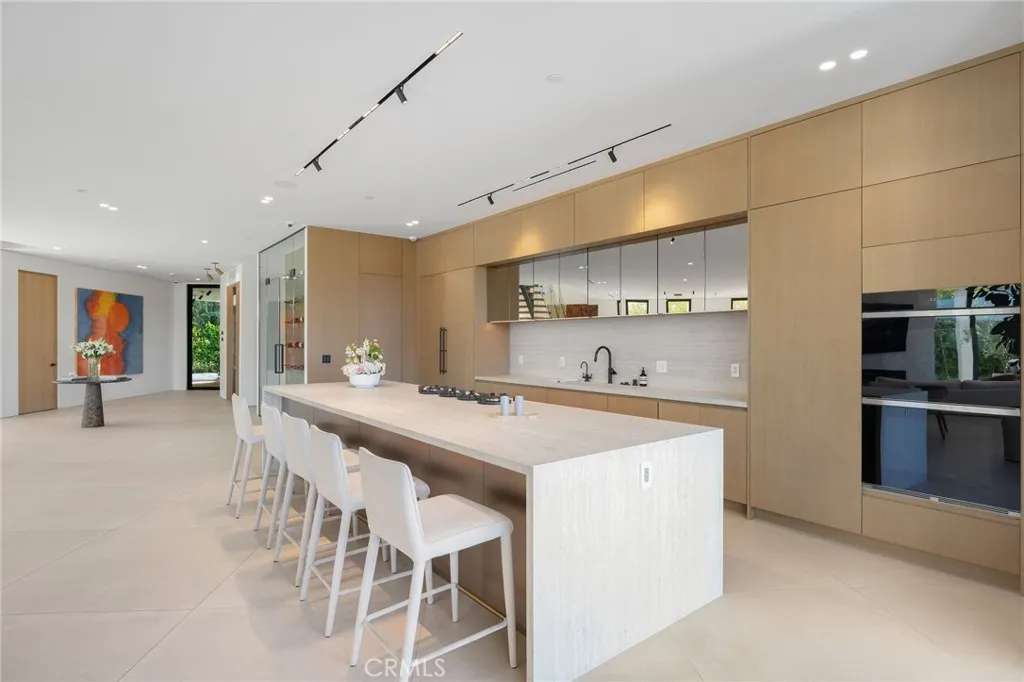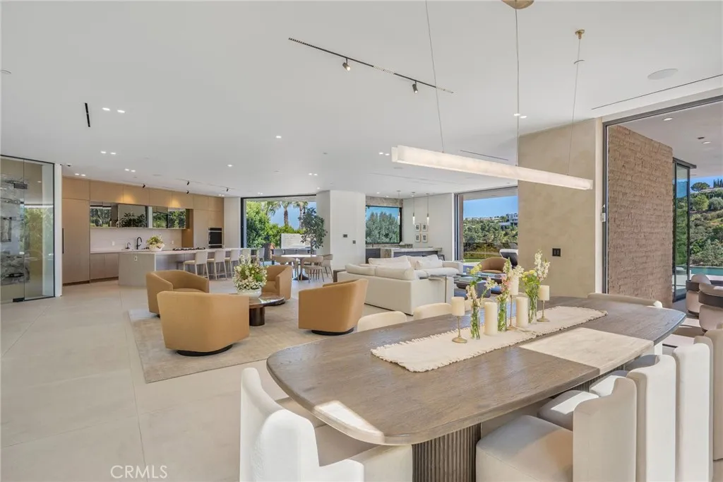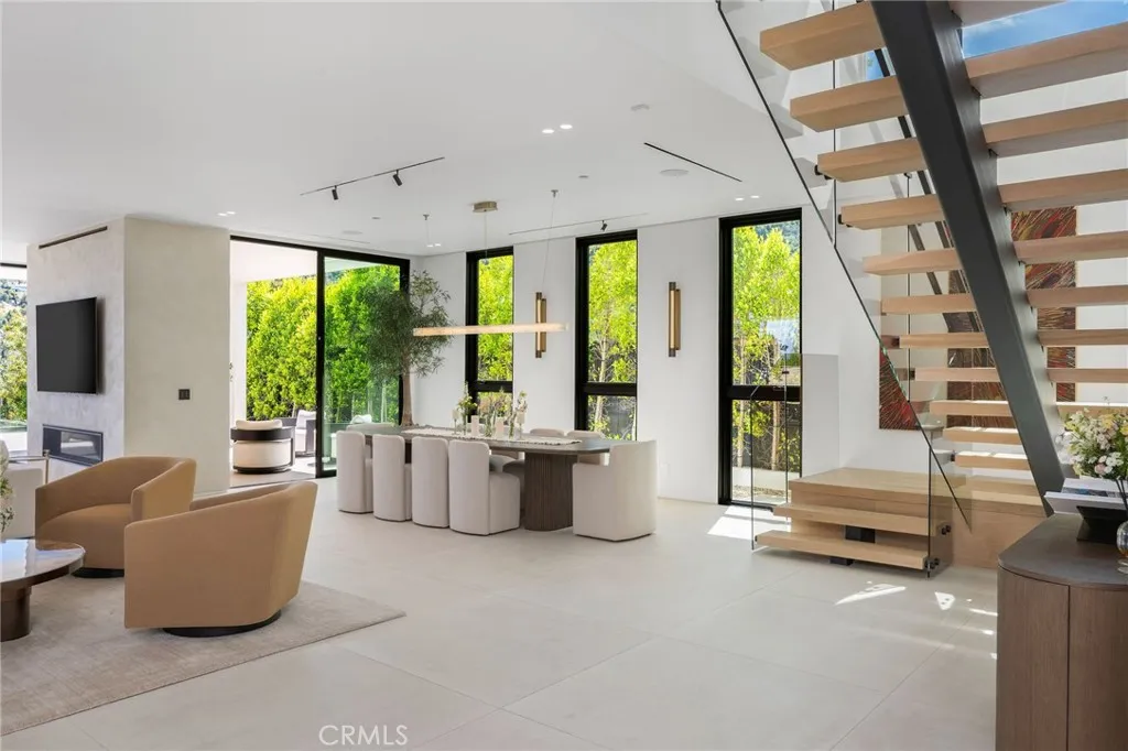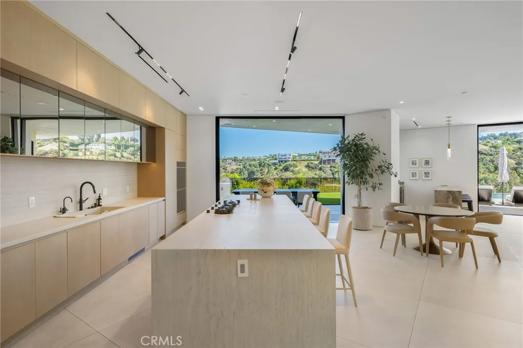 Welcome to your captivating newer construction modern masterpiece with incredible views, located South of the Blvd in Encino. Located on a flag lot set behind large private gates, sits this grand estate perched above boasting approx. 7,977 sqft of refined luxury. Awe inspiring main level welcomes you to quintessential indoor outdoor California living. Incredibly open floor plan generates a smooth flow from the sweeping through the dining room to with glass enclosed wine display, family room with stone fireplace, chefs kitchen with large center island, walk in pantry pantry, bedroom with en-suite bathroom, Media room and patio overlooking the ultimate entertainer's dream backyard. Upstairs beholds an upstairs living room complete with fireplace, 3 exquisitely designed en-suite bedrooms perfect for family and friends. The romantic master retreat features a stunning fireplace, expansive walk-in closet, luxurious spa-like bathroom, and glass sliding doors leading out to the extensive balcony with incredible views. The entertainers backyard showcases a covered patio deck with outdoor fireplace, outdoor kitchen, dedicated gym area under the pool, and large pool and spa with infinity edge. Additional conveniences include Control4 smart home automation system and high tech security. Architecturally designed with meticulous perfection, this trophy estate is unlike any other. Close to the best shops, fine dining and many more.