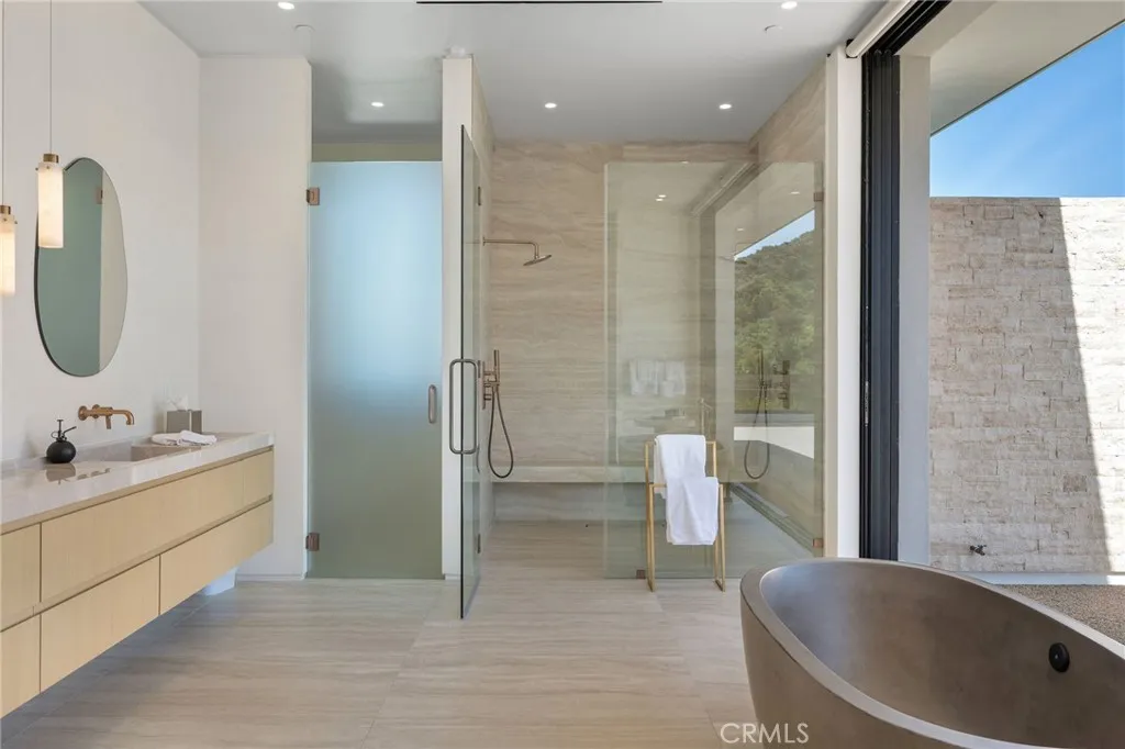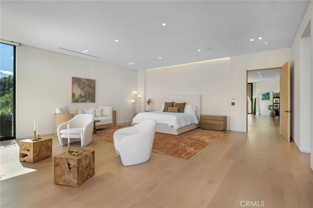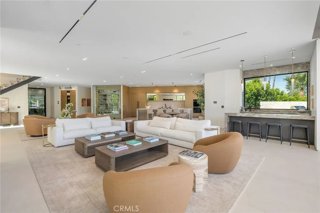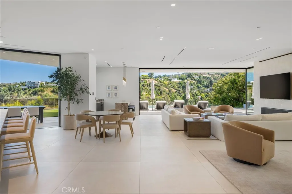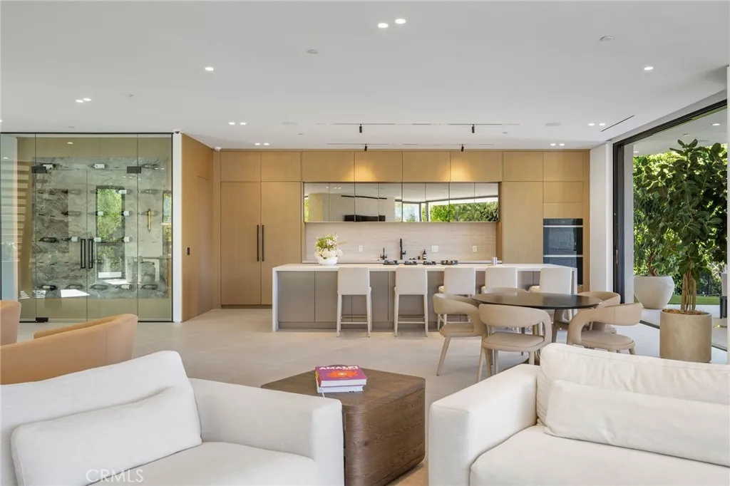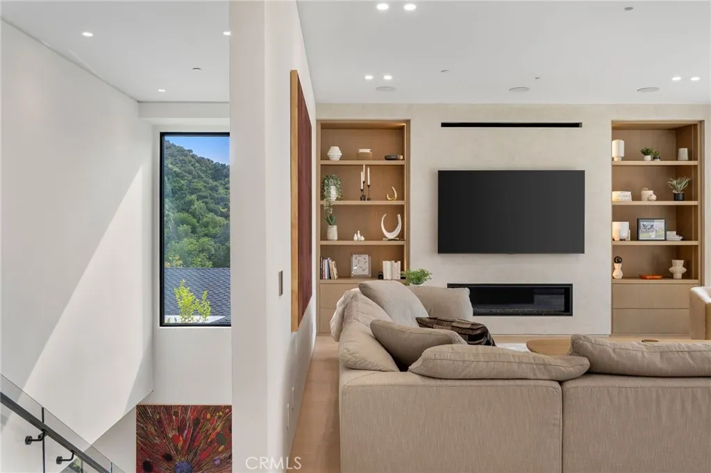 Welcome to your captivating newer construction modern masterpiece with incredible views, located South of the Blvd in Encino. Located on a flag lot set behind large private gates, sits this grand estate perched above boasting approx. 7,977 sqft of refined luxury. Awe inspiring main level welcomes you to quintessential indoor outdoor California living. Incredibly open floor plan generates a smooth flow from the sweeping through the dining room to with glass enclosed wine display, family room with stone fireplace, chefs kitchen with large center island, walk in pantry pantry, bedroom with en-suite bathroom, Media room and patio overlooking the ultimate entertainer's dream backyard. Upstairs beholds an upstairs living room complete with fireplace, 3 exquisitely designed en-suite bedrooms perfect for family and friends. The romantic master retreat features a stunning fireplace, expansive walk-in closet, luxurious spa-like bathroom, and glass sliding doors leading out to the extensive balcony with incredible views. The entertainers backyard showcases a covered patio deck with outdoor fireplace, outdoor kitchen, dedicated gym area under the pool, and large pool and spa with infinity edge. Additional conveniences include Control4 smart home automation system and high tech security. Architecturally designed with meticulous perfection, this trophy estate is unlike any other. Close to the best shops, fine dining and many more.