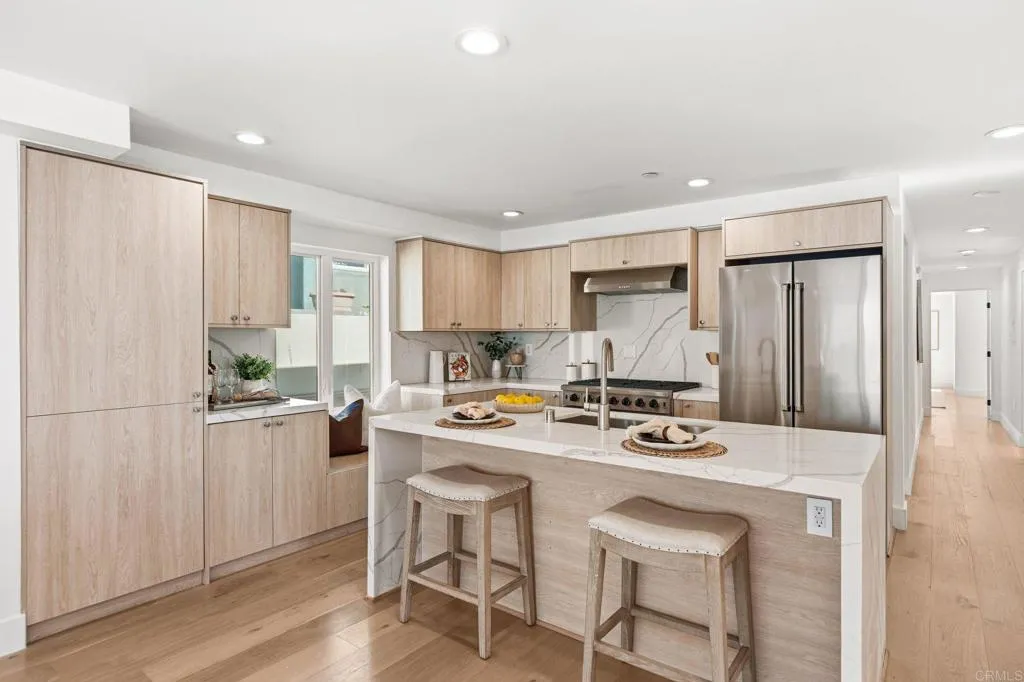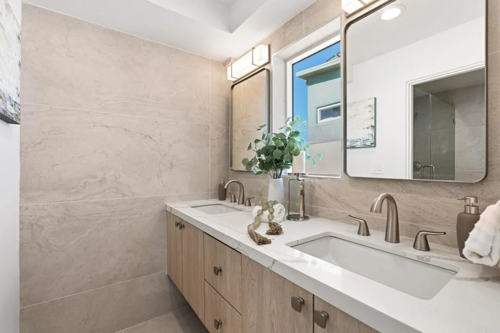 Panoramic white-water views set the stage at this brand-new modern beach property on Oceansides iconic Pacific Street. Just steps from the sand, this listing includes two newly completed residences in a striking duplexeach with its own utilities and legal parcel number. Dont miss the rare opportunity to purchase both homes and own the entire building, offering the flexibility for investment or multigenerational living. The property is comprised of 212 S Pacific - a 4-bedroom + bonus room/office, 2.5-bath home offering 2,600 sq ft of light-filled space with clean modern finishes throughout. And 214 S Pacific - the top floor home with 5-bedrooms, 2.5-baths and 2,650 sq ft of living space. The open-concept main living areas flows directly to spacious ocean-facing decksperfect for dining al fresco, watching surfers skim the waves, and taking in the unforgettable sunsets. The oversized primary suites include a retreat area, walk-in closet, and private balcony. Each unit has a 1-car garage plus tandem covered parking, ductless A/C throughout, and a west facing ground level patio, with ocean views of course! Enjoy effortless access to the beach right across the street, bring your surfboards and boogie boards! Ideally located just two blocks to the Oceanside Pier and within walking distance to the city's best restaurants, rooftop bars, cafes, and the weekly farmers market. With prime beach access and short-term rental potential, this property offers both an exceptional lifestyle and investment opportunity. Own a piece of the coast on one of Southern Californias most desirable beach