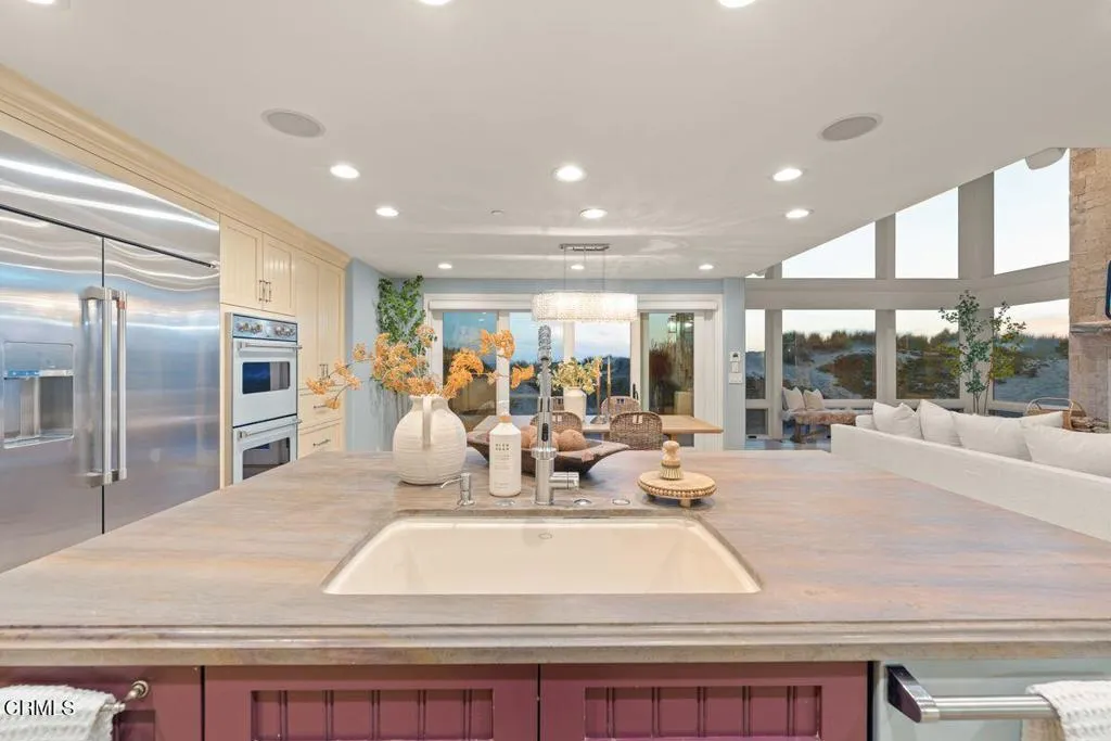 Wake up to the rhythm of the waves and end your days with golden sunsets. Set on 79 feet of premier beachfront, 1096 Belfast Lane captures sweeping vistas of the Pacific Ocean, the Channel Islands, and the iconic Ventura Pier--an ever-evolving seascape that defines the essence of coastal California.Thoughtfully designed with both scale and sophistication in mind, the home offers 4 bedrooms and 4.5 bathrooms, complemented by an expansive lower-level media lounge that easily transitions into a fitness or guest studio. At the heart of the home, the chef's kitchen is elegantly appointed with professional-grade appliances, blending performance with understated luxury.A defining architectural centerpiece, floor to ceiling framed glass showcasing the beach and ocean like a living work of art, dissolving the boundary between interior and exterior while bathing the home in natural light. Multiple view decks and outdoor living spaces invite effortless indoor-outdoor living with direct beach access, ideal for both intimate relaxation and elevated entertaining. An oversized two-car garage and generous driveway provide ample parking for 6 cars.A true sanctuary where every day feels like a vacation.