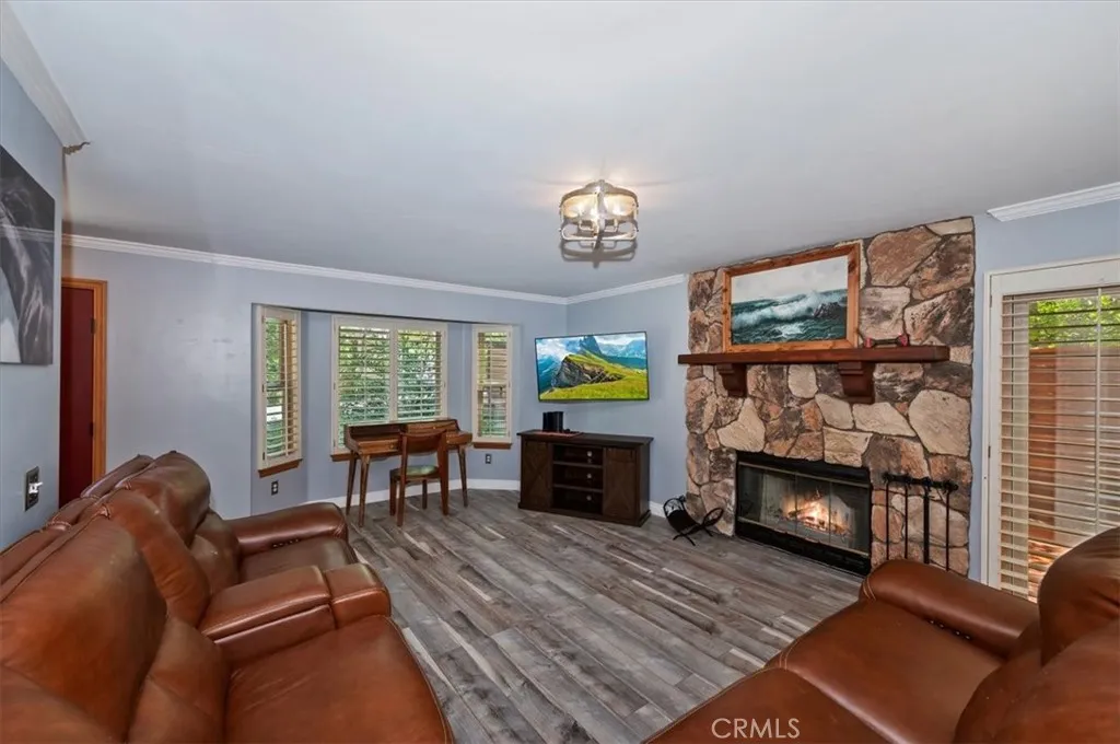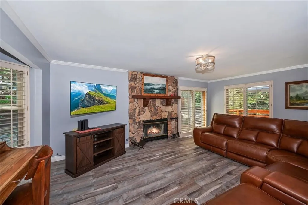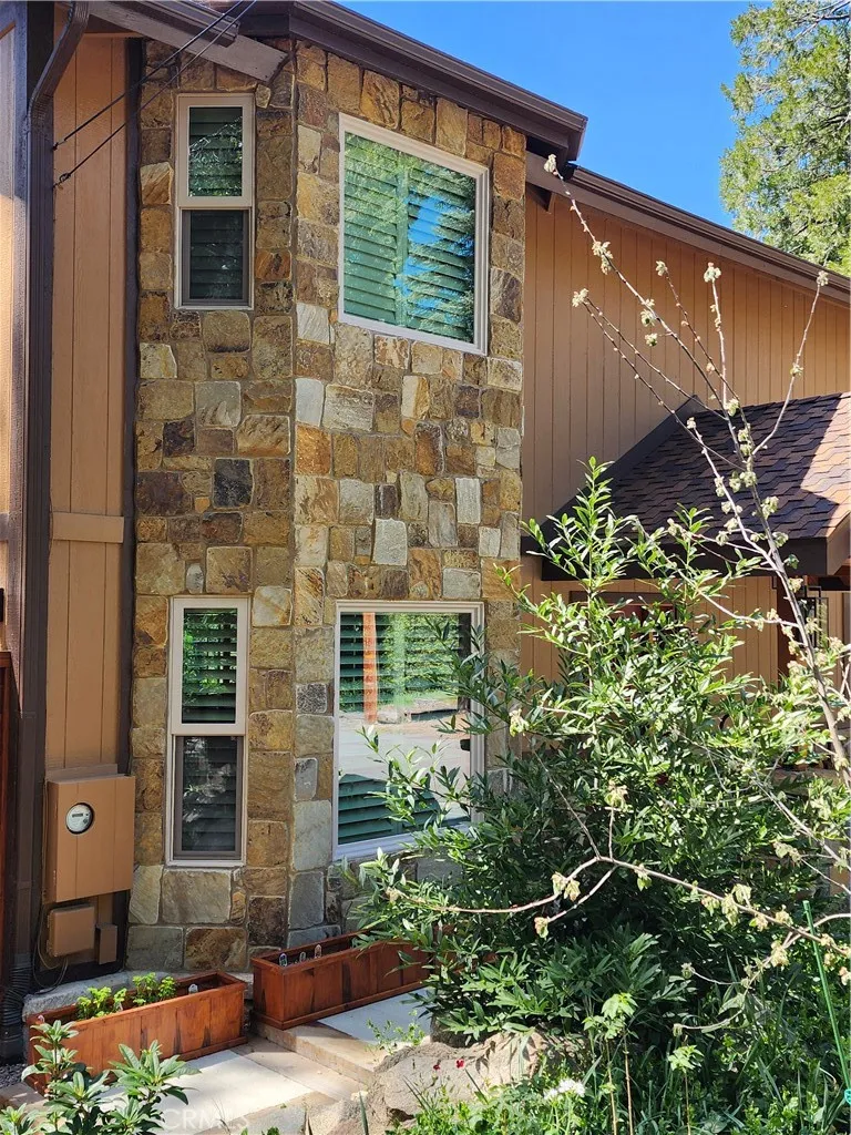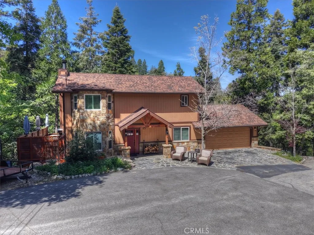 Gorgeous San Moritz area cul-de-sac home featuring ideal level entry plus attached oversized garage with direct access! Pride of ownership with meticulous maintenance inside and out, lots of recent upgrades/updates and lovely private feeling decks & flagstone patios to enjoy the views! Home is nicely perched near the end of the cul-de-sac on a large street to street lot to ensure an extra sense of privacy. Walkways, meandering trails and stairs throughout the property add a lush woodsy nicely landscaped setting to enjoy. Lots of parking in the level concrete driveway plus additional parking in the garage. Garage features custom flooring, cabinets, workshop with utility sink and exterior access. Spacious kitchen with newer stainless appliances. Luxury vinyl plank flooring throughout the main level. Cozy rock fireplace in the living room with large sliding glass door leading out to the private feeling wrap around deck. Large primary suite with private deck, full en suite bathroom and spacious walk in closet. Extras include whole house natural gas generator, A/C, tankless hot water heater, new high efficiency dual pane windows, large lodge style covered entry area with flagstone and stone pillars, solid stone facing on the front of the home and more. Don't miss this amazing home, make your offer today!