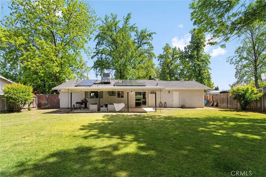This upgraded 3-bedroom, 2-bath residence offers 1,120 square feet of comfort, style, and long-term value. Inside, youll find a refined living space featuring an updated upgraded kitchen, upgraded flooring throughout, and beautifully refreshed bathrooms. The primary bedroom features a walk-in closet and private en suite bath. There are two additional bedrooms with plenty of storage. Behind the scenes, significant investments give peace of mind for years to come: in 2022 a new roof, modern HVAC system and owned solar installed, delivering both sustainability and energy efficiency. In 2026, a brand new water heater also adds to the homes turnkey appeal. The true standout is the expansive grounds, sitting on just under half an acreoffering a rare sense of space and privacy. Could be a good spot for entertainers, a garden oasis, or future expansion opportunity, the possibilities are endless. A property of this calibercombining substantial upgrades, energy efficiency, and a premium lot size, is a rare offering in Chico. Experience elevated living with the space to truly make it your own.