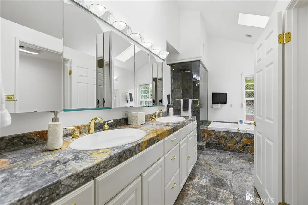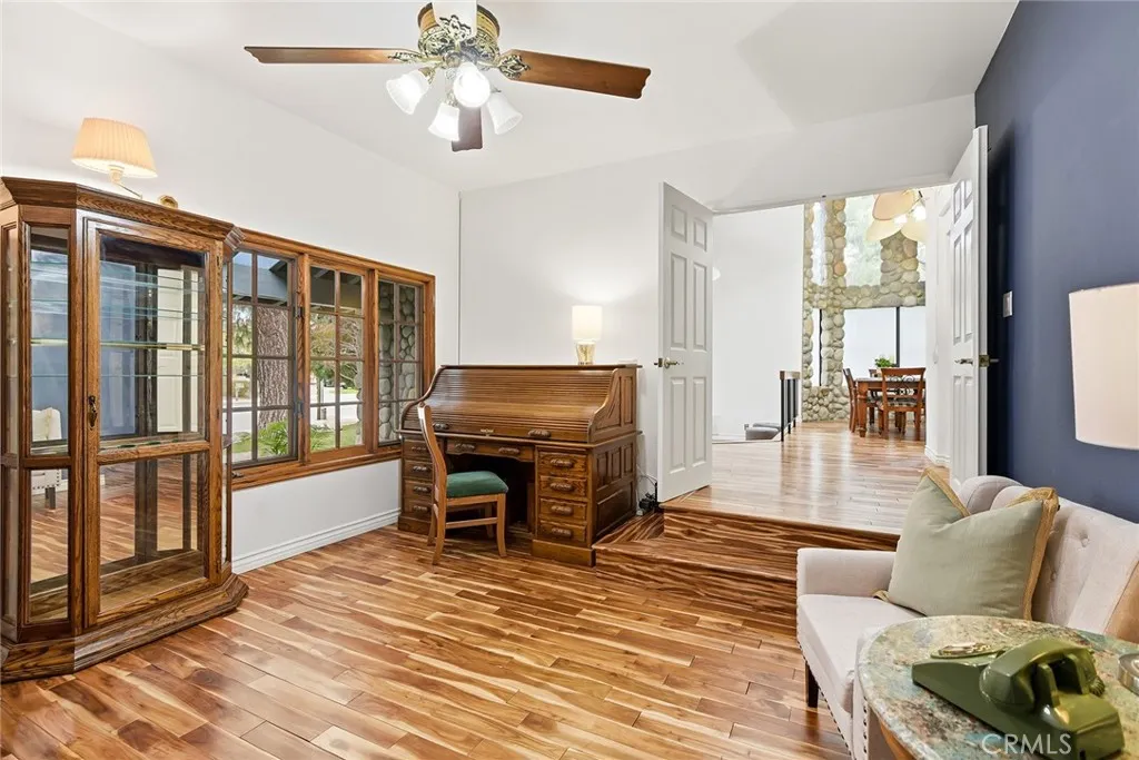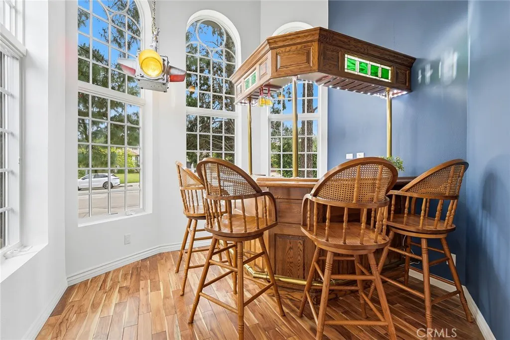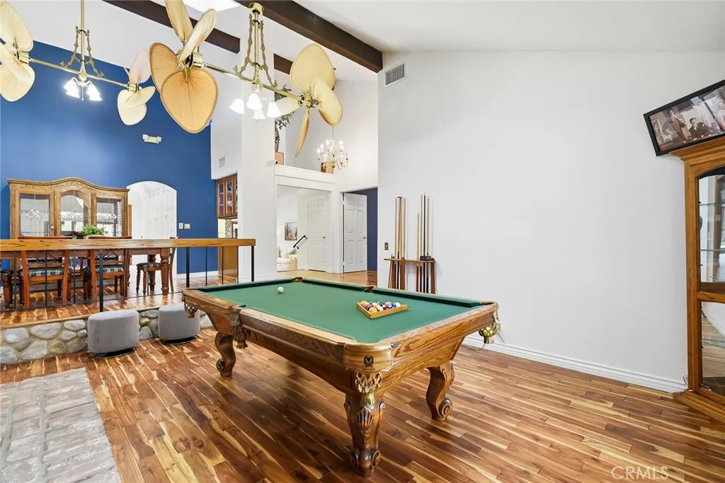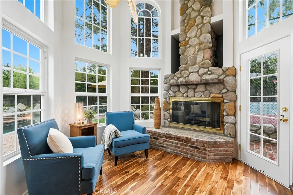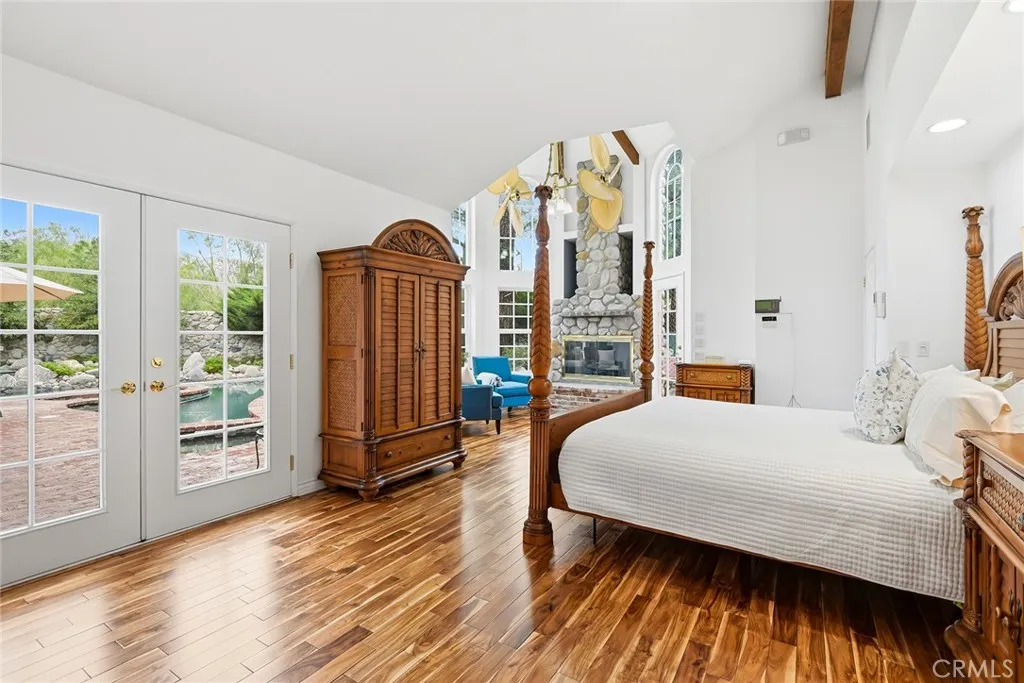 Custom Lake Tahoe-inspired single-story estate set in the prime Granada Highlands on a whisper-quiet street, this rare architectural showpiece captivates from the moment you arrive. A storybook cobblestone exterior is highlighted by a dramatic turret-style design with soaring arched windows, creating an unforgettable first impression. Set beneath mature pine trees, the home is framed by lush landscaping and a brick driveway that enhances its warmth and character. The custom stone faade is complemented by rich wood garage doors with designer hardware, while a gated entry adds privacy and a true sense of arrival. Designed for both entertaining and everyday living, the home features soaring ceilings, expansive windows, and warm acacia wood flooring throughout. The floor plan offers multiple living spaces, including a spacious family room with exposed beams and a stunning river rock fireplace, a formal dining area filled with natural light, and a private office with double-door entry. At the heart of the home is a chef-inspired kitchen with a custom ILVE Italian range, secondary Zephyr cooktop, built-in refrigerator, wine cooler, and extensive custom cabinetry. Granite countertops, skylights, and French doors create a bright space with seamless indoor-outdoor flow. A standout feature is the custom octagon bar room with two-story windows, solid oak bar, and unique architectural detailsideal for entertaining. The adjacent pool parlor offers high ceilings, skylights, and a dramatic river rock fireplace. The home features two primary suites, each offering a private retreat. The ori