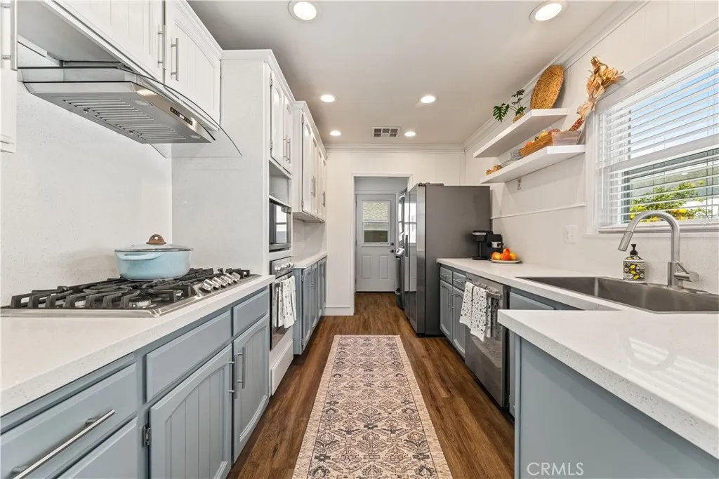 Now offered at an excellent valuean incredible opportunity in the heart of Lakewood. Set on a quiet, tree-lined street near local parks and a nearby golf course, this beautifully upgraded home blends comfort, style, and versatility. Bright, open living spaces are enhanced by rich wood flooring, recessed lighting, and a striking wood accent wall, creating a warm yet refined atmosphere. The remodeled kitchen is designed to impress, featuring quartz countertops, updated cabinetry and hardware, a gas cooktop, wall oven, designer hood, dishwasher, and custom shiplap detailingperfect for both everyday living and entertaining. A spacious family room with exposed beam ceilings and a decorative fireplace offers incredible flexibility and is currently styled as a generous primary retreat, complete with custom glass doors and a built-in closet system. Thoughtful upgrades throughout include fresh interior and exterior paint, updated window frames, dual-pane windows, a finished drywalled 2-car garage, and valuable system improvements such as roof work, termite clearance, underground electrical upgrades, and solar panels. Step outside to a private backyard with refreshed landscaping and a covered patioideal for relaxing or hosting. Move-in ready, thoughtfully upgraded, and now offering outstanding valuethis is one you wont want to miss.