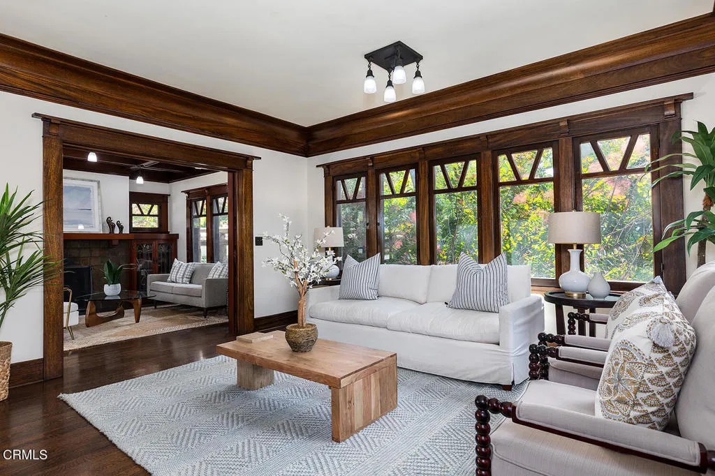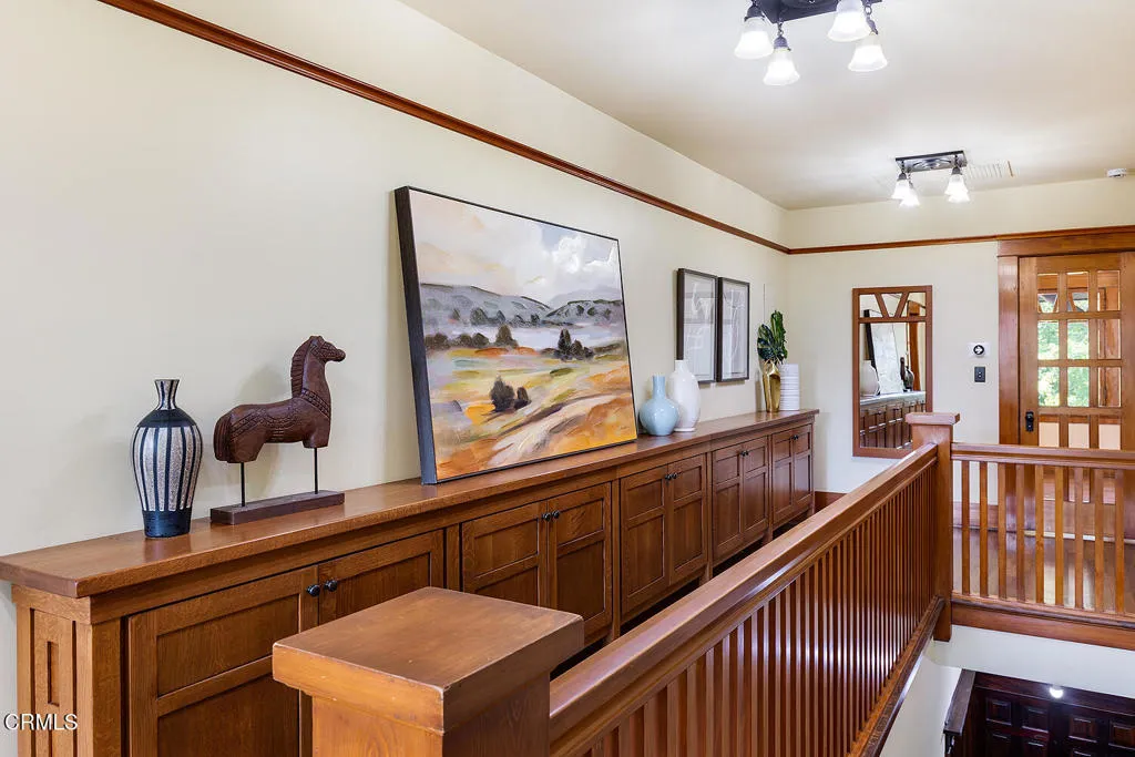 There are homes that impress at first glance, and then there are homes that endure, whose presence is always meant to stand where they do. 1361 Ridge Way is unmistakably one of those houses and an important architectural treasure on a spectacular street. Meticulously restored and sensitively renovated in 2005 by award-winning architect Douglas Ewing, this home was originally built in 1909 by The Milwaukee Building Company, renowned designers of iconic landmarks like Grauman's Chinese and Egyptian Theaters. This stately chalet-style Craftsman home sits proudly on a beautifully-landscaped half-acre lot surrounded by specimen trees and serene gardens. Protected by a transferable Mills Act contract that provides significant property-tax savings, here is a rare opportunity to own a historically-significant estate. A rustic front veranda welcomes guests into a gracious foyer and an impressive LR highlighted by Peruvian mahogany millwork, a charming Inglenook, custom light fixtures and quarter-sawn oak floors. The inviting den features redwood-beamed ceilings, a tiled fireplace and built-in bookcases. The formal DR is equally striking, showcasing an artistic oak buffet, and an ideal place to entertain. A butler's pantry leads to the gourmet kitchen, remodeled in the spirit of the home, with top-of-the-line appliances and a large island opening to a delightful outdoor porch for alfresco dining. The main level also houses a spacious laundry room and a powder room. Gracing the second floor are four generously-sized BRs with fabulous garden vistas, including a primary BR suite with an