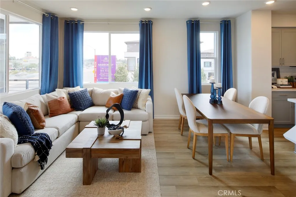 Welcome to Sagecrest by Century Communities! This beautiful Tri-level Gated townhome community is located in the heart of Riverside close by the 91 freeway right off Van Buren Blvd. very close to shopping, restaurants and California Baptist University as well as UC Riverside. After walking through your private patio, you will enter to the first floor you will find a jr. suite with its own walk-in closet and full bathroom. Heading up to the second floor you enter a spacious Kitchen with a large island and dining area open to living room which has a large private balcony with city views. The kitchen features " Aria Stone Gray" cabinets, quartz counters and a stylish backsplash. The second level also includes a bedroom and full bathroom. Going up to the third level you will find a spacious Owner's Suite which includes large bathroom with double sinks, walk-in shower and walk-in closet. Finishing the 3rd level there's an additional bedroom with its own private bathroom and walk-in closet. Laundry room is also on third level. Come see this amazing community, Sagecrest is a Gated Community and will include a playground, dog park, shade structures and BBQs and more!