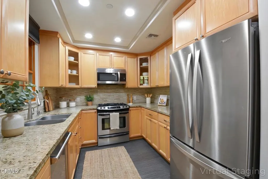 Enjoy a relaxed and refined lifestyle at Gardens on Hill, a beautifully maintained Mediterranean-style community in the heart of Pasadena. From the moment you enter through the elegant iron gates and welcoming travertine entry, you're surrounded by peaceful garden courtyards and charming walkways that create a serene, retreat-like setting.Inside, the residence offers a bright and comfortable layout designed for effortless everyday living. With 9-foot ceilings, crown molding, and natural light streaming through a custom French door, the space feels open yet inviting. The living area is anchored by a classic stone fireplace, creating the perfect setting for quiet evenings or hosting gatherings. The spacious kitchen is thoughtfully designed with granite countertops, stainless steel appliances, and generous cabinetry, practical, functional, and easy to maintain.Recent updates include a remodeled bathroom with a walk-in shower, fresh paint throughout, and updated lighting, giving the home a refreshed feel so you can move in with ease. A convenient laundry closet with a stackable washer and dryer adds to the home's functionality. Additional features include two side-by-side parking spaces in a gated garage, along with a private storage unit, offering both security and everyday convenience. The community has been enhanced with a newer roof, and HOA coverage includes water, trash, and earthquake insurance, providing added peace of mind.Ideally located just minutes from local dining, shopping, the Metro, Caltech, and Old Town Pasadena, this home offers the perfect balance of conveni