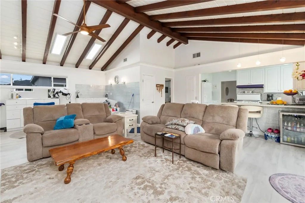 Move right into this beautifully remodeled 3-bedroom, 2-bath home with approximately 1,790 sq. ft. of living space on an oversized 6,052 sq. ft. lot. Enjoy a separate dining room and a large family room with dramatic open beam ceilings, wood-style floors, and a cozy wood-burning fireplace. Modern comforts include central AC, dual-pane windows, plush new carpet in the living room and bedrooms, fresh interior paint, custom tile work throughout, and updated kitchen finishes. Highlights: Built-in hair styling station, Large family room with open beam ceiling + wood-style floors. Separate dining room. Central AC, new paint, new plush carpet. Dual-pane windows, custom tile, newer roof. 200 amp electric panel. Two wood-burning fireplaces. Private back yard includes large patio area with plush lawn and fruit trees and your own "She Shed". Located on a quiet street in Lakewood close to schools, shopping & transportation. A must-see home in one of Lakewoods best neighborhoods.