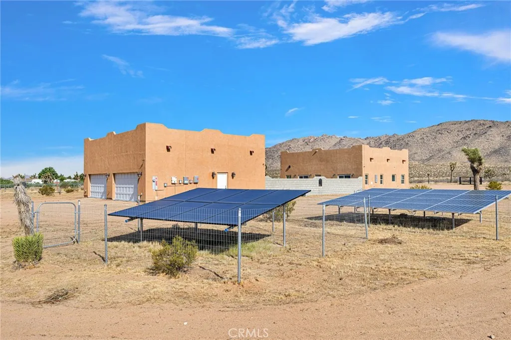 Experience true independence and wide-open living with this exceptional 2-bedroom, 2-bath property, designed for comfort, functionality, and privacy. Featuring a fully paid-off solar system, this all-electric home offers little to no electric bill and eliminates the need for gasdelivering both efficiency and long-term savings. A private well ensures reliable water access, making this property truly self-sustaining. Inside, youll find a spacious layout highlighted by a large custom kitchen with abundant counter space and an oversized pantryperfect for storage and entertaining. The home includes two generously sized bedrooms, including a comfortable primary suite, along with two well-appointed bathrooms. Car enthusiasts, hobbyists, or those needing extra workspace will appreciate the massive, fully finished oversized garage with room for 5+ vehicles. Step outside to a large courtyard, ideal for gatherings, relaxing evenings, or enjoying the peaceful surroundings. Fully fenced and equipped with two electric gates, this horse property provides both security and flexibility. With ample space for animals, equipment, or future projects, the possibilities are wide open. Three adjacent lots are also available to be sold with the property, offering additional investment or expansion potential. If youre looking for privacy, self-sufficiency, and room to grow, this one-of-a-kind property is ready to deliver.
