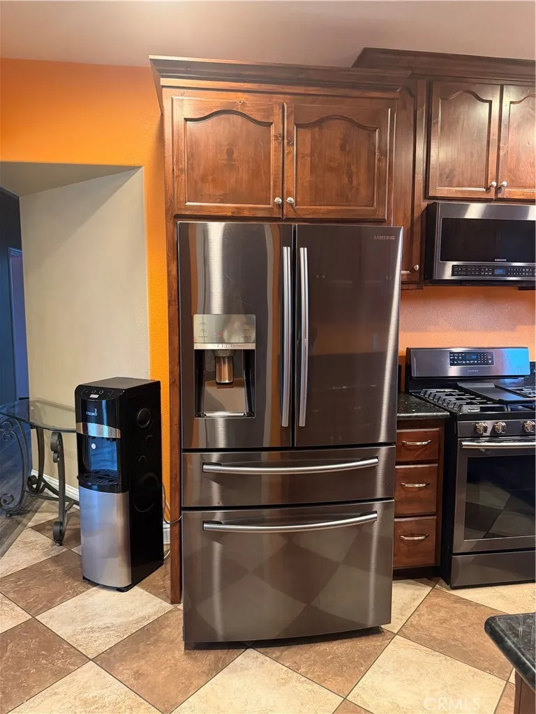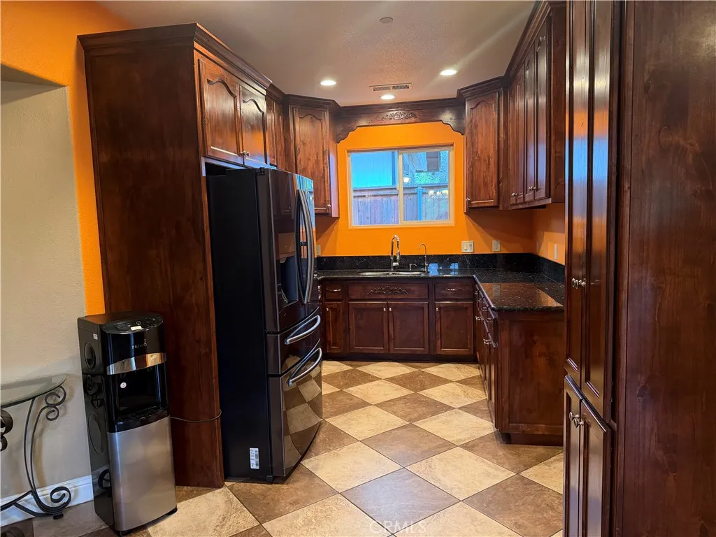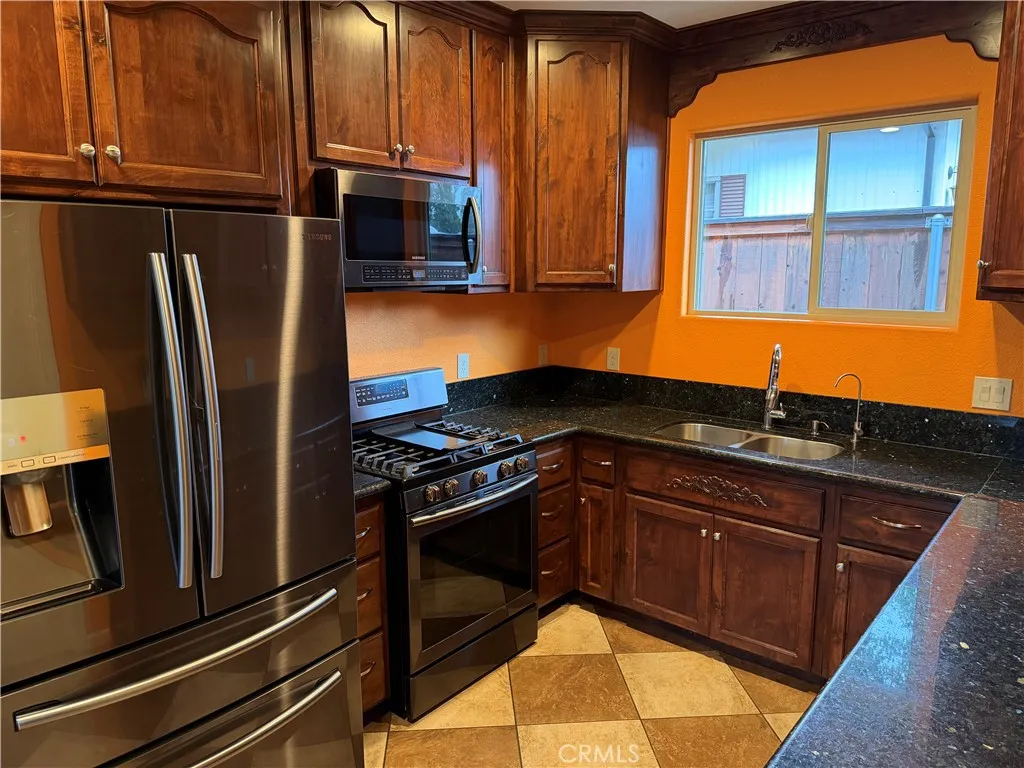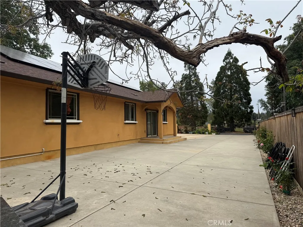 Beautifully maintained home with gated front entry and expansive concrete driveway offering ample parking for multiple vehicles, RV, or toys. Open-concept layout features vaulted ceilings, recessed lighting and durable vinyl and wood style flooring and tile throughout. Spacious living area flows into dining space and kitchen with large moveable island that is ideal for entertaining. Cozy freestanding wood stove adds warmth and charm. Generously sized bedrooms with updated finishes. Bathrooms feature dual sinks, granite countertops, and tiled shower/tub combos. Large low maintenance backyard with gravel landscaping, mature trees and plenty of room to customize. Detached structure offers additional storage potential. Great blend of privacy, space, and functionality. Solar panels included in the sale, newer roof, insulated garage and EV hookup.