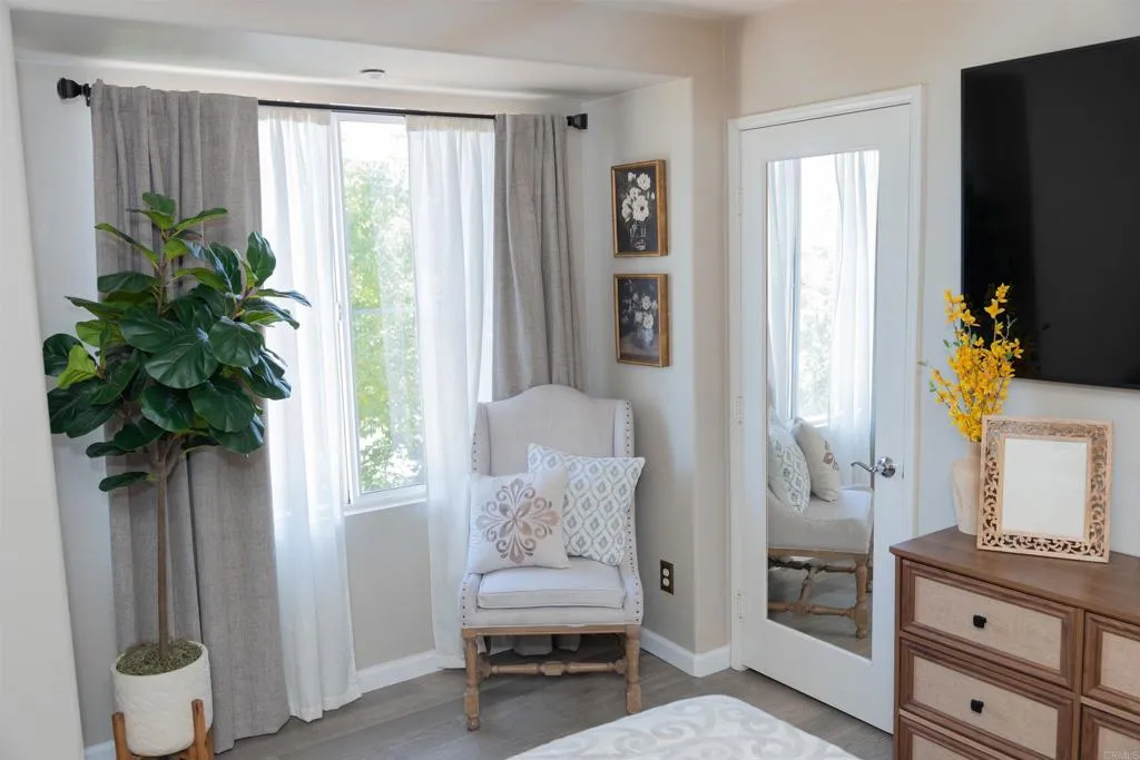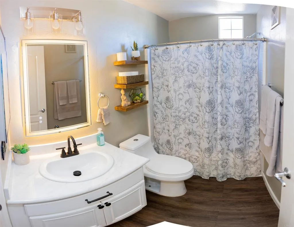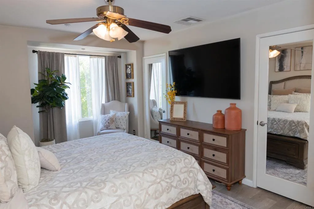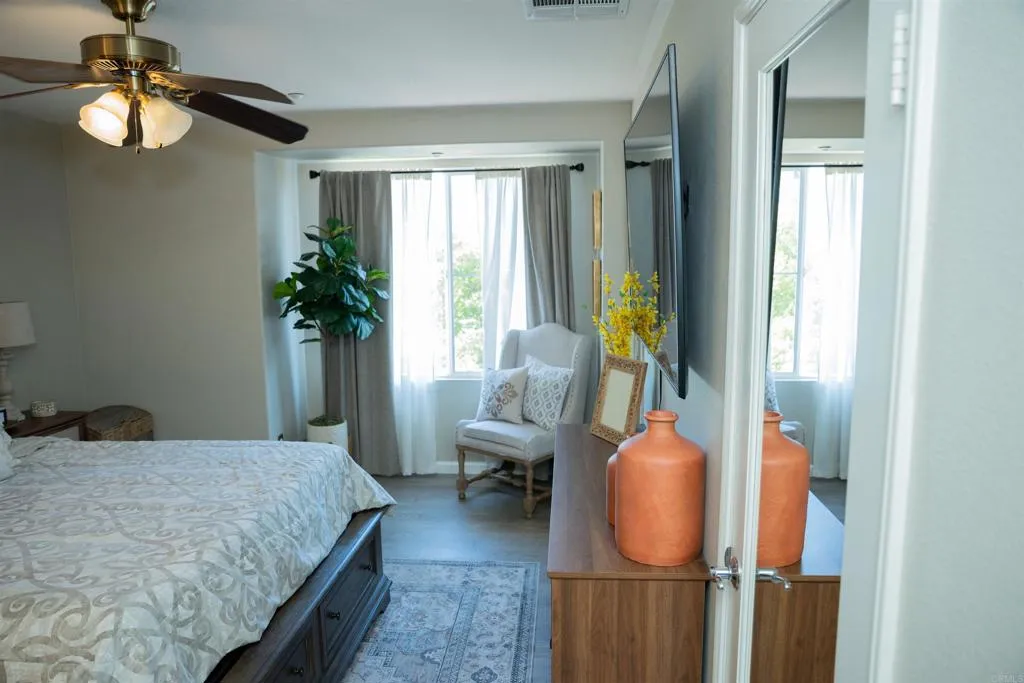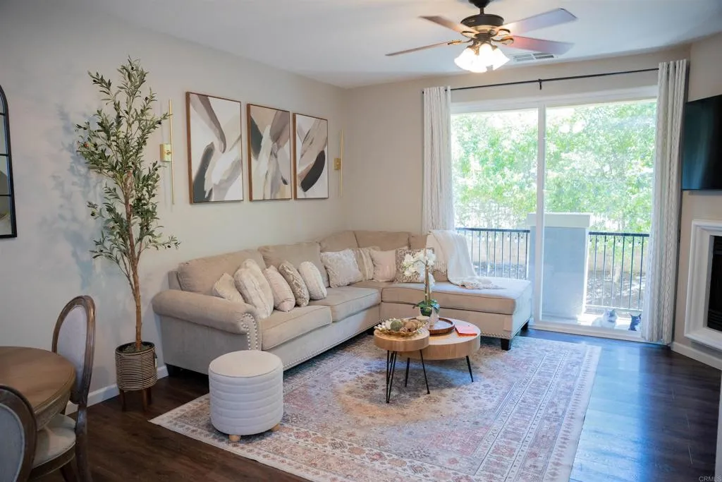 Experience modern suburban living at its finest in this stunning Treviso townhome, perfectly situated in the heart of west Santee. Spanning 1,342 square feet, this residence boasts a thoughtful, high-function layout that includes a full bedroom and bathroom on the main level, catering effortlessly to guests or multi-generational needs. The heart of the home is a bright, open-concept kitchen featuring elegant granite countertops, a brand-new 5-burner cooktop, and a sleek modern backsplashall flowing seamlessly into a living area that opens onto a private balcony. Privacy is paramount here, as each of the three bedrooms is paired with its own dedicated bathroom. The primary suite serves as a true retreat, offering dual closets and an en-suite bath with dual sinks. Beyond the interior comfortslike the full-size laundry room and ceiling fansthe home includes an attached 2-car garage for easy storage and parking.