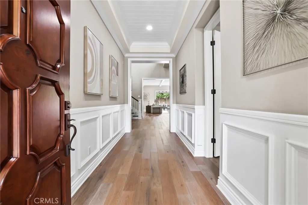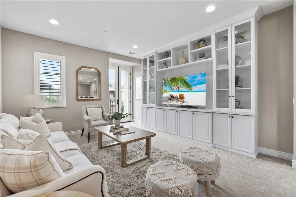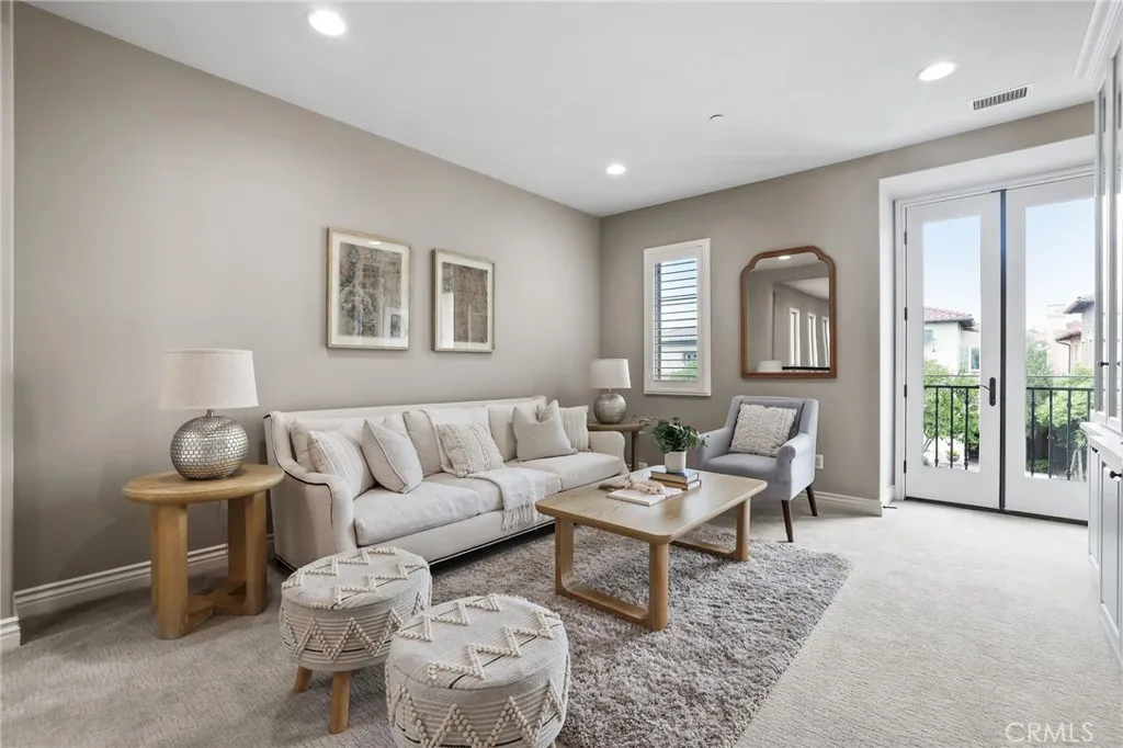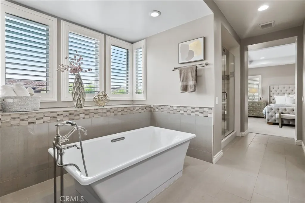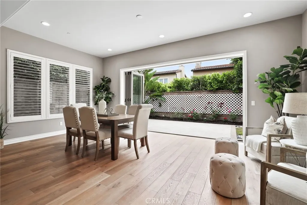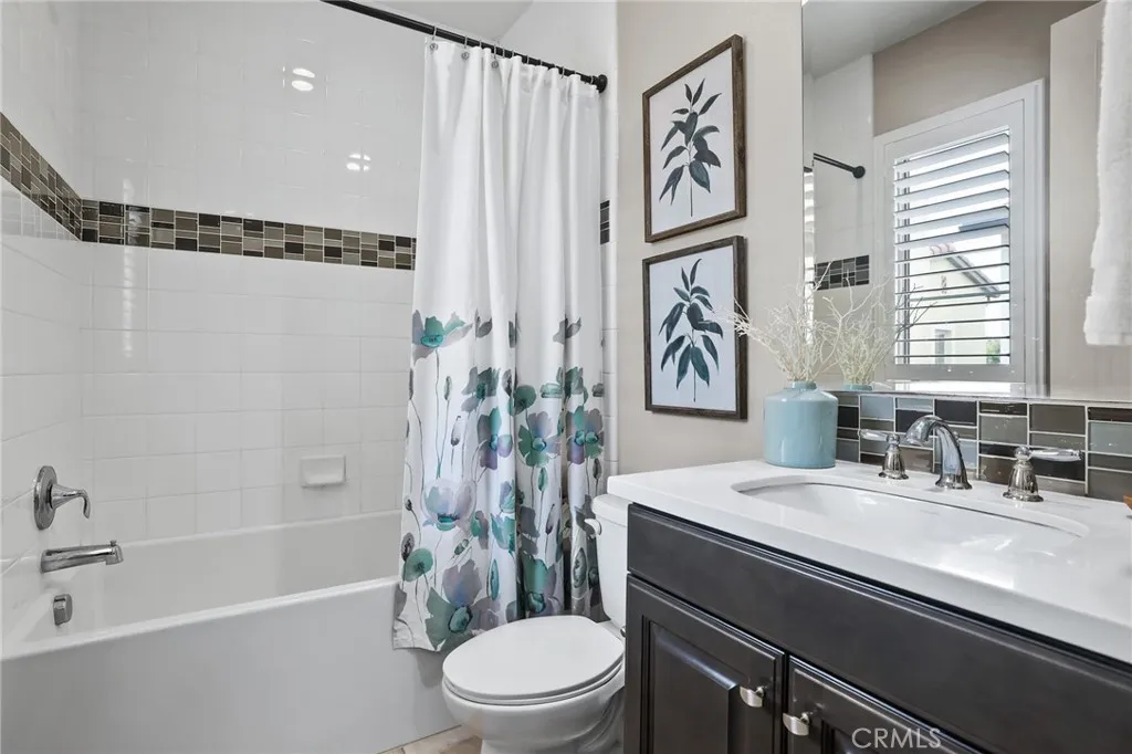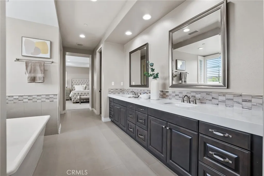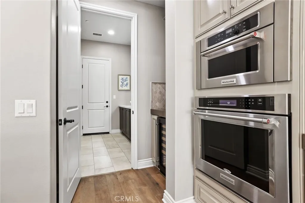 Located in the prestigious guard-gated community of The Groves at Orchard Hills, this stunning Modern Mediterranean residence offers 4 ensuite bedrooms, including a highly desirable main-level guest suite, plus an upstairs loft across approximately 4,191 square feet of thoughtfully designed living space. Enter through the solid wood front door to rich hardwood flooring and an open-concept great room showcasing soaring ceilings and elegant wood beam details. The spacious family room flows seamlessly into the dining area and gourmet kitchen, appointed with upgraded cabinetry, quartz countertops, oversized center island accented by designer RH pendant lights, walk-in pantry, stainless steel appliances, and a separate prep kitchen that provides additional cabinetry, counter space, secondary sink, and enhanced functionality for entertaining, everyday cooking, or keeping the main kitchen beautifully organized. The downstairs guest bedroom with private ensuite bath is ideal for multigenerational living, overnight guests, or a private home office. Upstairs, a generous loft provides flexible living space ideal for a media room, office, or play area. The luxurious primary suite features a spa-inspired bath and dual walk-in closets with custom built-in shelving. Two additional secondary bedrooms are generously sized, each with their own private full baths. Designed for exceptional indoor-outdoor living, the backyard offers a spacious covered patio with pergola, perfect for entertaining or everyday relaxation, with stylish seating and dining areas framed by mature landscaping for enhan