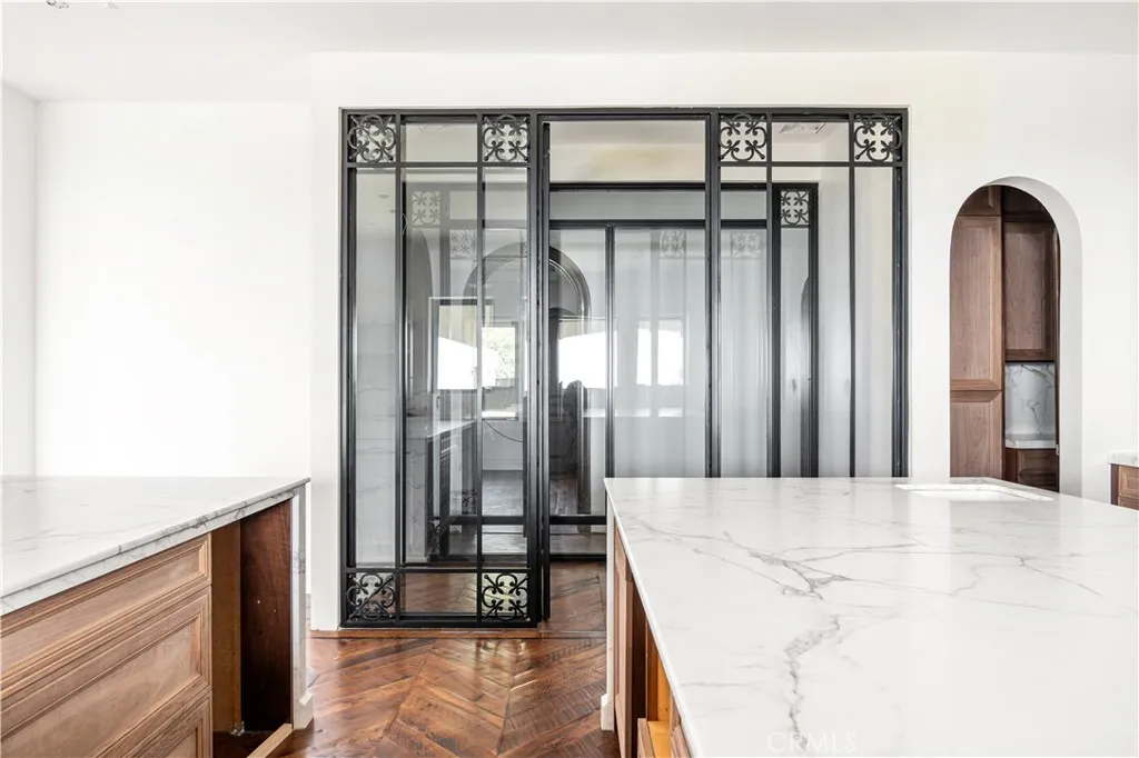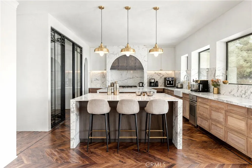 Rare new-construction luxury estate in highly sought-after Mar Vista Heights, Whittier, showcasing stunning Spanish Modern architecture blending timeless character with modern design. Situated on an 18,000+ sq ft lot, this exceptional residence offers approx. 4,602 sq ft of living space, including a beautifully designed outdoor patio. Nearly complete at 97%, allowing the opportunity to customize final landscaping and pool design. A dramatic 12-ft iron front door leads to a breathtaking arched entry with silver and gold leaf detailing and a custom marble lighting arch, setting a striking tone. Inside, soaring ceilings and an open-concept layout create a bright, seamless flow ideal for entertaining and everyday living. Features include 3 bedrooms, 3.5 baths, plus a versatile bonus room (4th bedroom/office/lounge). A formal dining room adds flexibility. The chefs kitchen showcases walnut cabinetry, Italian finishes, dual marble islands, walk-in pantry, and a glass-enclosed wine room. The family room opens through expansive Fleetwood glass doors to panoramic views from Catalina Island to Downtown LA, delivering true indoor-outdoor living. Additional highlights include hardwood floors, marble bathrooms, spa-like primary suite, smart home system, central HVAC, and 2-car garage. A rare opportunity to own a nearly completed luxury home of this caliber in Whittierschedule your private tour today.