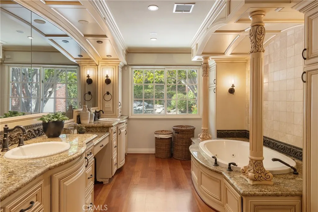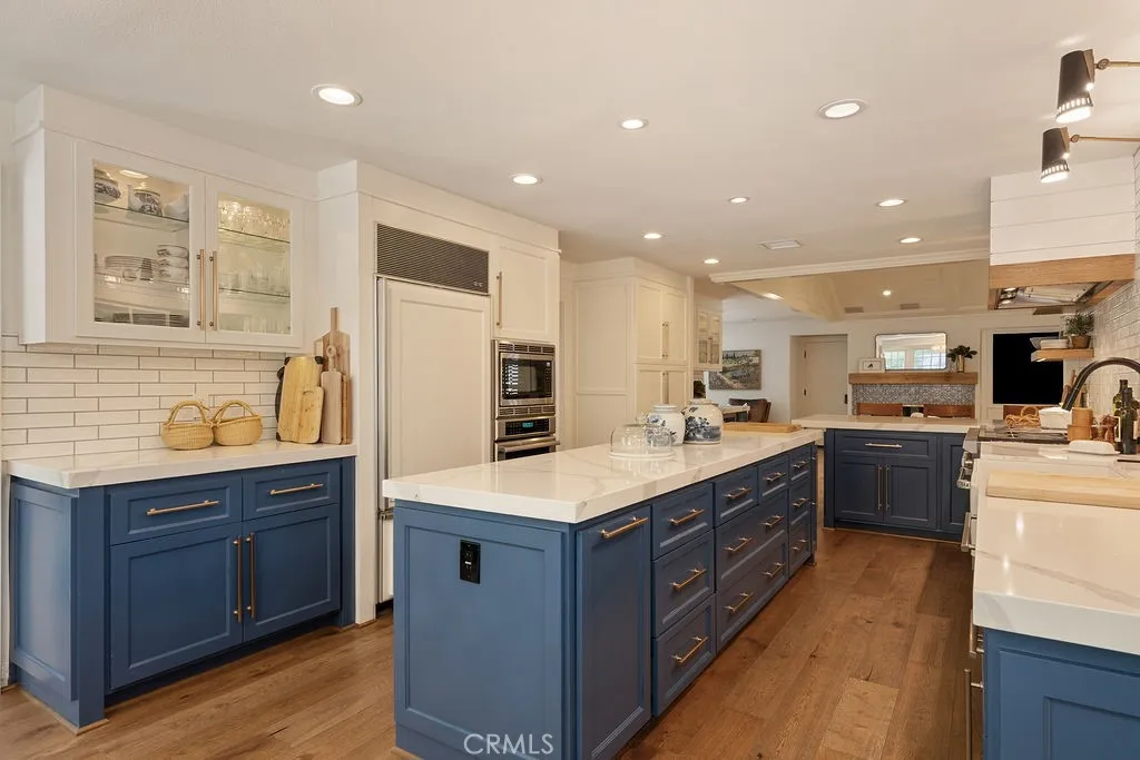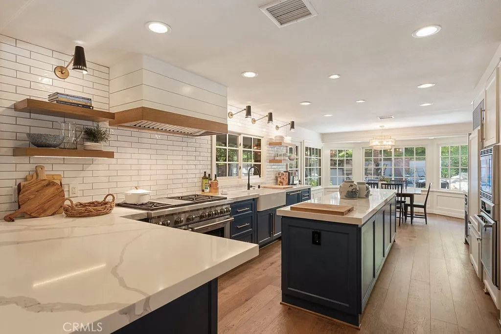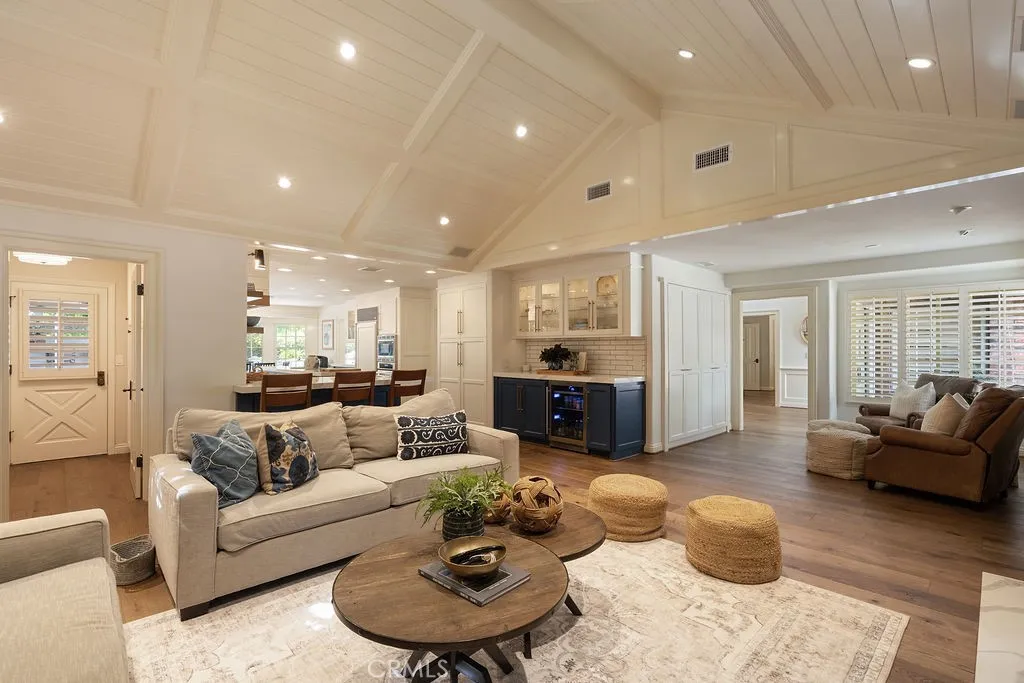 Situated on an expansive 15,000 SF lot just at the border of Villa Park, this beautifully updated 4-bedroom, 4.5-bathroom residence offers over 3,600 square feet of refined living space, blending timeless character with modern upgrades. Vaulted ceilings and custom millwork throughout enhance the homes architectural detail, while each of the four spacious bedrooms features its own en-suite bath, providing comfort and privacy throughout. Thoughtfully enhanced by the seller, the home showcases new hardwood flooring throughout, a striking custom metal staircase, and fresh interior paint complemented by updated lighting. The fully remodeled kitchen is a dream, featuring three ovens and high-end finishes designed for both everyday living and entertaining. Additional improvements include two new AC units with updated ducting, new garage doors, and a resurfaced fireplace accented by a custom reclaimed wood mantle, adding warmth and character to the main living space. One upstairs bathroom has also been tastefully remodeled. Step outside to your private backyard retreat, complete with a pool, spa, outdoor kitchen, and fireplace, ideal for entertaining or relaxing year-round. This exceptional property offers a rare combination of space, style, volume, and thoughtful upgrades in the beautiful community of Villa Heights, right on the edge of Villa Park.