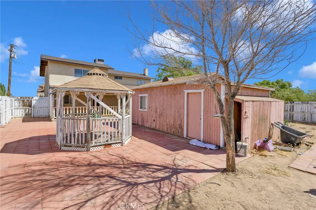 This custom-built home sits on a generous lot in desirable Hesperia, offering space, comfort, and convenience. The inviting living room features a stunning rock fireplace, creating a warm focal point perfect for relaxing or entertaining. The thoughtfully designed layout includes one bedroom and bathroom downstairsideal for guests or multi-generational living. A separate laundry room adds everyday convenience, while the spacious kitchen is equipped with stainless steel appliances and opens seamlessly to a formal dining area, perfect for gatherings. Upstairs, the primary suite offers a private retreat with a large balconyan ideal spot to enjoy morning coffee or evening sunsets. Step outside to a covered patio, gazebo, and outdoor shed, providing plenty of space for outdoor living, storage, and entertaining. Conveniently located just minutes from Interstate 15 and close to shopping, this home combines peaceful living with easy access to everything you need.