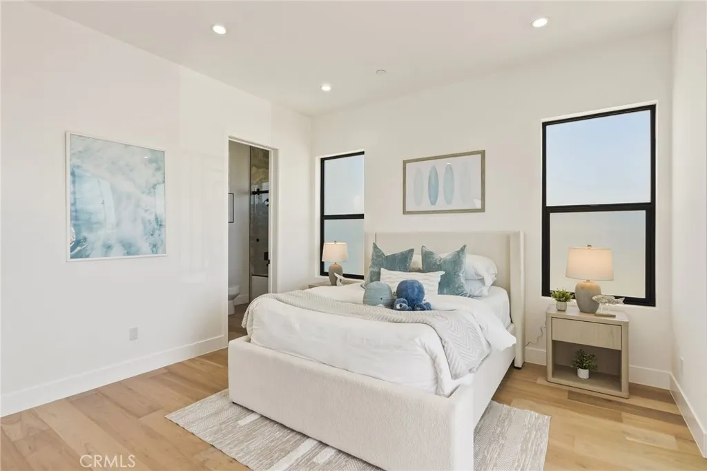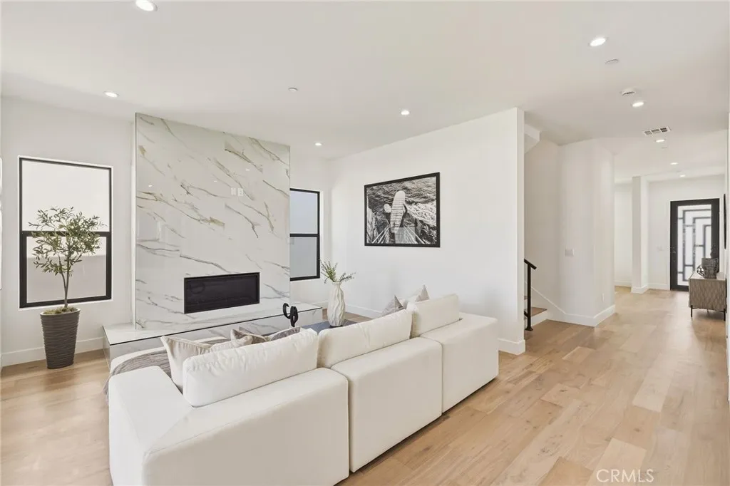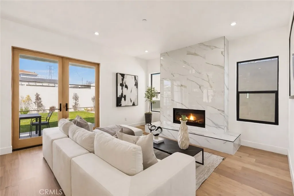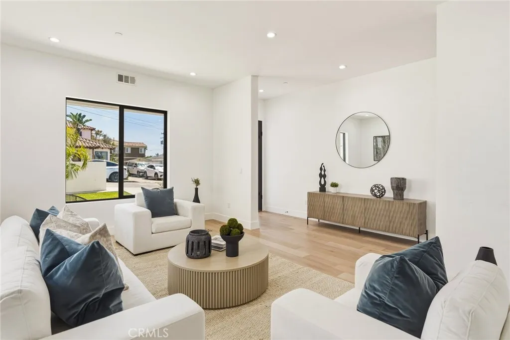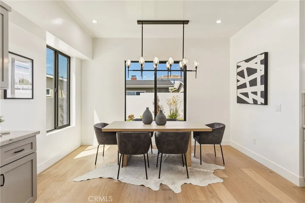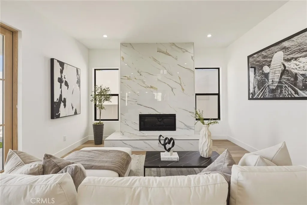 Modern design meets everyday functionality in this brand new SINGLE FAMILY construction home in North Redondo Beach. Offering 4 bedrooms and 4 bathrooms, the thoughtfully designed floor plan features a desirable downstairs bedroom and bath with a walk-in showerideal for guests, extended family, or a home office. The main level is designed for both comfort and connection, beginning with a welcoming living room just off the entry. The space flows into an open-concept family roomcomplete with a fireplace and French doors that open to the spacious backyardand connects seamlessly to the kitchen and large dining area. The kitchen is beautifully appointed with quartz countertops, sleek appliances, and ample space for gathering and entertaining. Upstairs, the private primary suite offers a spacious retreat with a walk-in closet and a well-appointed bathroom featuring dual sinks, a freestanding soaking tub, and a walk-in shower. Two additional upstairs bedrooms each include their own en-suite bathrooms, and all bedrooms feature private balconies, enhancing the sense of space and creating a true retreat. A large backyard completes the home, offering ample space for outdoor entertaining, play, or future customizationperfectly suited for enjoying the South Bay lifestyle. Additional features include air conditioning throughout, security cameras, and convenient main-level laundry.