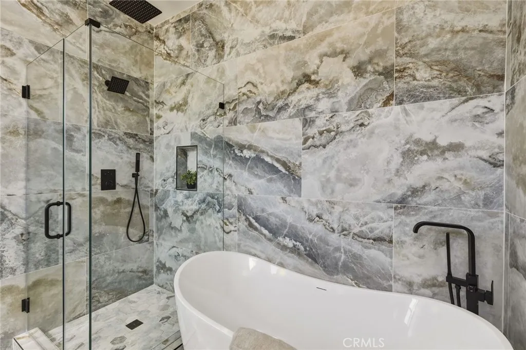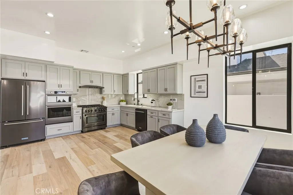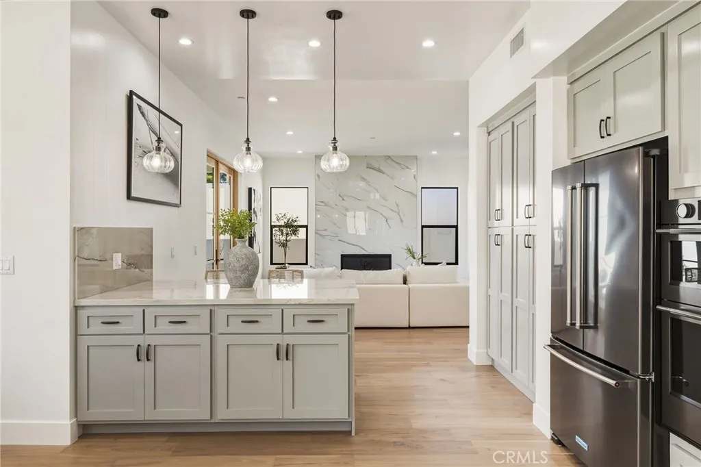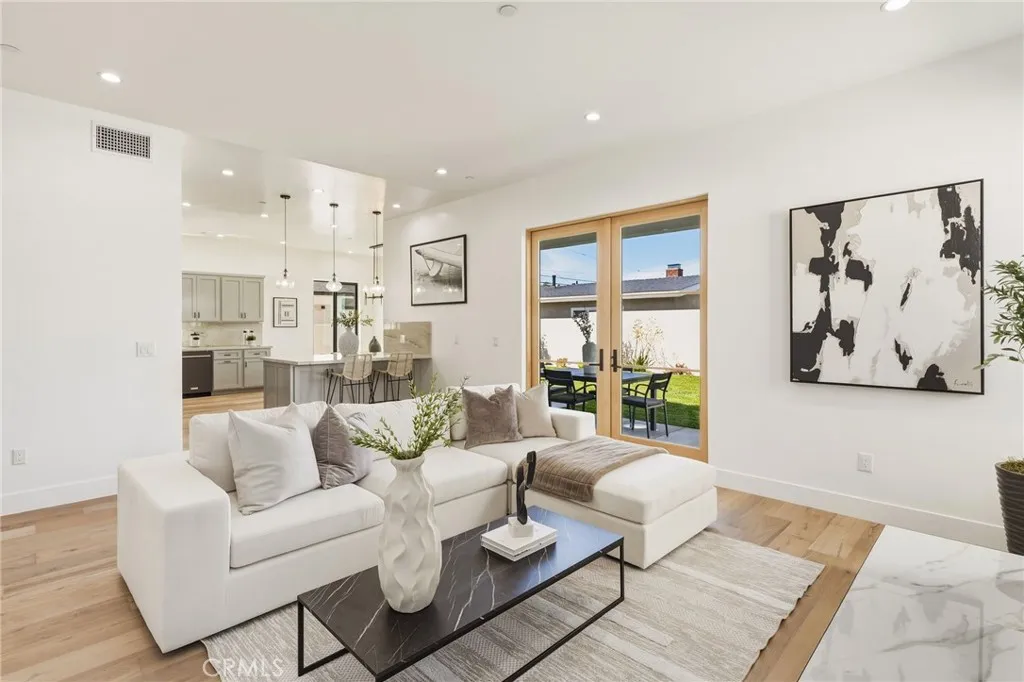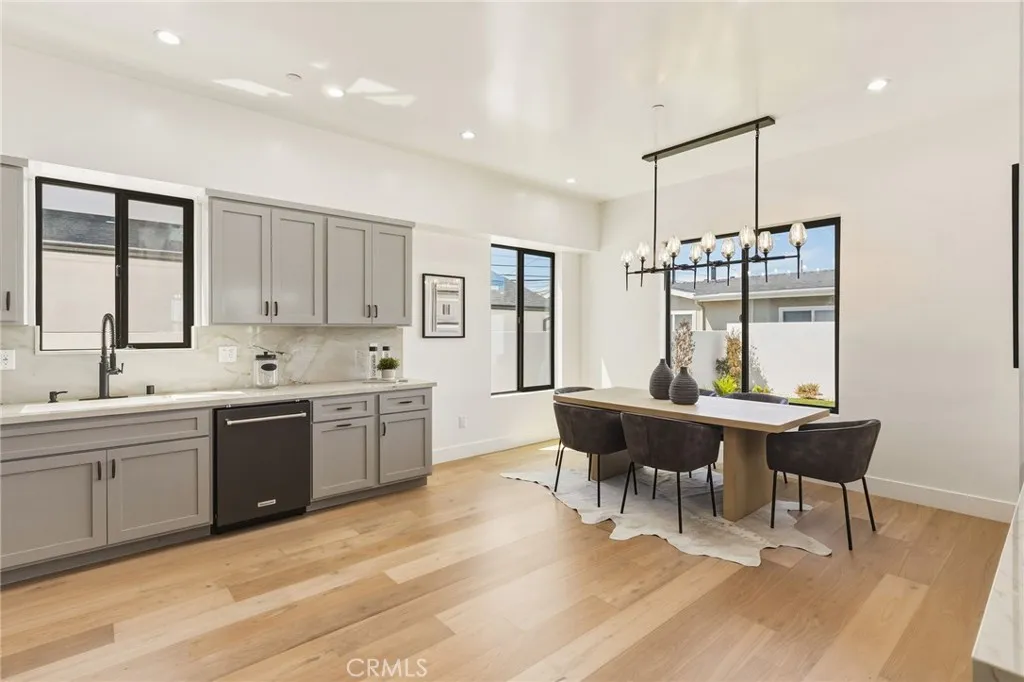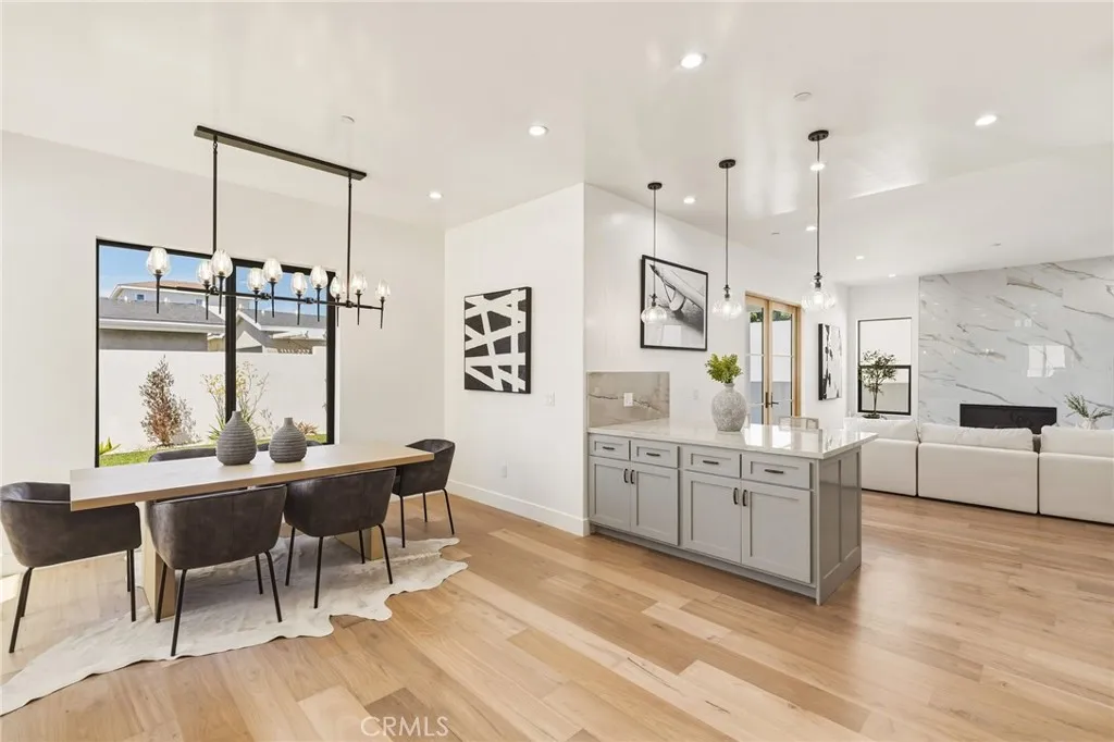 Modern design meets everyday functionality in this brand new SINGLE FAMILY construction home in North Redondo Beach. Offering 4 bedrooms and 4 bathrooms, the thoughtfully designed floor plan features a desirable downstairs bedroom and bath with a walk-in showerideal for guests, extended family, or a home office. The main level is designed for both comfort and connection, beginning with a welcoming living room just off the entry. The space flows into an open-concept family roomcomplete with a fireplace and French doors that open to the spacious backyardand connects seamlessly to the kitchen and large dining area. The kitchen is beautifully appointed with quartz countertops, sleek appliances, and ample space for gathering and entertaining. Upstairs, the private primary suite offers a spacious retreat with a walk-in closet and a well-appointed bathroom featuring dual sinks, a freestanding soaking tub, and a walk-in shower. Two additional upstairs bedrooms each include their own en-suite bathrooms, and all bedrooms feature private balconies, enhancing the sense of space and creating a true retreat. A large backyard completes the home, offering ample space for outdoor entertaining, play, or future customizationperfectly suited for enjoying the South Bay lifestyle. Additional features include air conditioning throughout, security cameras, and convenient main-level laundry.