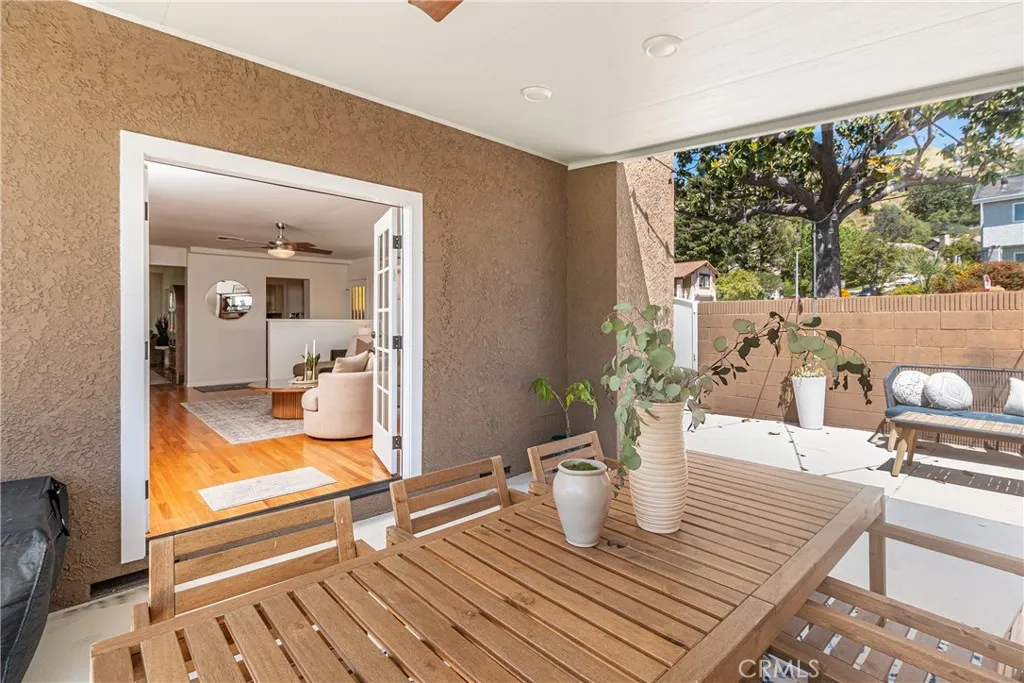 Set on a prominent corner lot in one of Burbanks most established residential neighborhoods, 736 Brown Drive makes a memorable first impression with its classic architecture, manicured lawn, and inviting curb appeal. From the moment you arrive, the home feels substantial, warm, and wonderfully cared for. Inside, natural light pours across rich wood flooring and creates an immediate sense of comfort. Just off the entry, the front room welcomes you with flexibility and charm, offering an elegant space that lends itself beautifully to dining, conversation, or everyday gathering. Deeper into the home, the main living area is tucked toward the rear, creating a more relaxed and private setting centered around a handsome fireplace and designed for both quiet evenings and easy entertaining. The galley kitchen is both functional and refined, featuring granite countertops, generous cabinetry, and an efficient layout that makes excellent use of the space. The home continues to reveal itself in a way that feels both practical and elevated, with thoughtfully designed rooms, tasteful finishes, and a floor plan that offers comfort and flexibility for daily living. The primary suite serves as a true retreat, with ample space to unwind and a remodeled bath that feels fresh, modern, and refined. The additional bedrooms provide versatility for guests, workspace, or changing household needs, while the bathrooms reflect a clean, updated aesthetic with thoughtful detail. What makes this home especially compelling is the connection to the outdoors. French doors open to a covered patio ideal for m