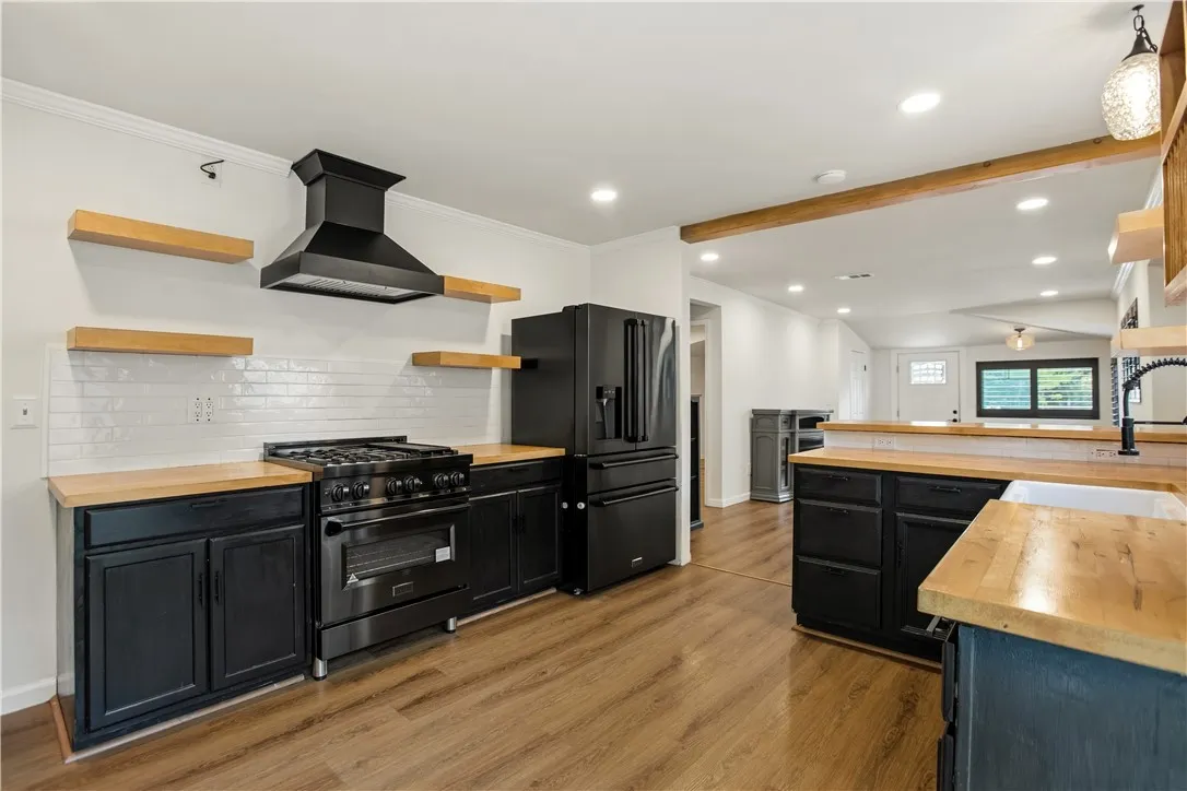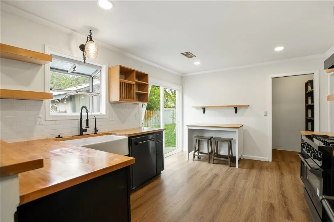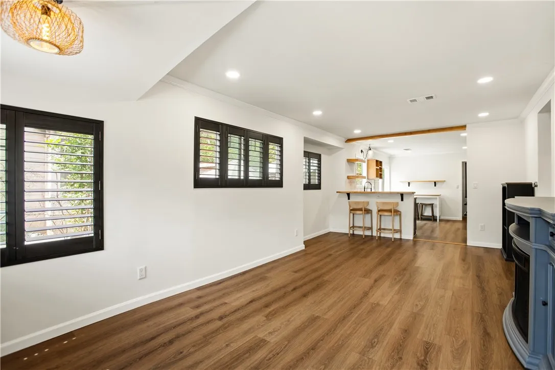 Beautifully reimagined 2-bedroom, 1-bath residence with a versatile bonus room, offering a refined blend of modern design and everyday functionality. This turnkey home showcases a bright, open-concept layout where the kitchen and living spaces flow seamlessly together, enhanced by elegant recessed lighting and complemented by stylish window shutters that add both charm and privacy. A thoughtfully designed bonus room provides flexibility for a private office, guest retreat, or creative space. Upgraded 200-amp electrical panel adds to the homes quality and efficiency. The exterior is equally inviting, featuring professionally designed drought-tolerant landscaping that delivers both curb appeal and low-maintenance living. Convenient alley access includes a Tesla EV charger, catering to modern lifestyle needs. The expansive backyard creates a private outdoor retreat, complete with two storage sheds and a charming tree houseideal for relaxation, entertaining, or recreation. Set in an area with limited available inventory, this exceptional property offers a rare opportunity to own a stylish, move-in ready home with thoughtful upgrades and distinctive character.
