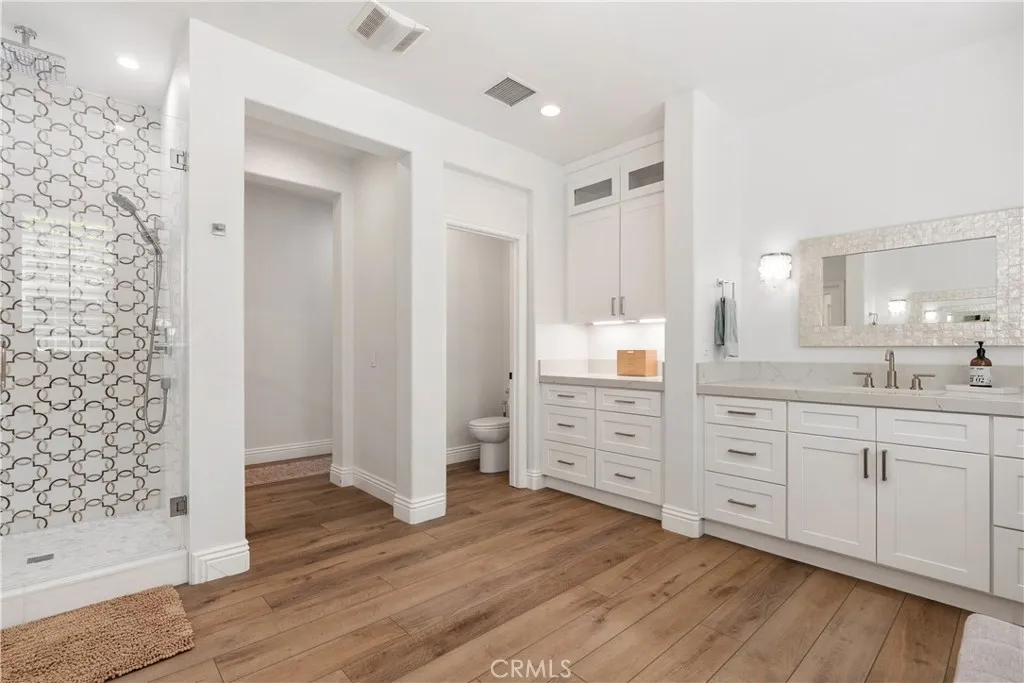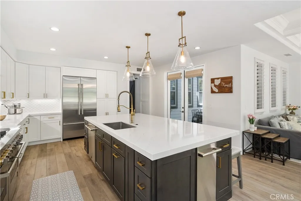 Welcome to 12 David Street, located within the prestigious, privately gated community of Covenant Hills in Ladera Ranch. Situated on a desirable corner lot along a quiet cul-de-sac with only 9 homes, this residence offers a serene setting with no homes directly in front, enhancing both privacy and curb appeal. This extensively remodeled home showcases thoughtful upgrades throughout including remodeled kitchen and bathrooms, PEX piping, luxury vinyl flooring, plantation shutters, wainscoting, shiplap and coffered ceilings, gorgeous LaCantina glass doors and Flip Out window in kitchen for easy access to the backyard. The highly sought-after floor plan features a grand entryway and four spacious en-suite bedrooms, with two conveniently located on the main levelincluding the primary suite. Upstairs, a generously sized loft offers exceptional flexibility and can easily function as a fifth bedroom, home theater, game room, or be divided into multiple spaces to suit your needs. Designed for both everyday living and entertaining, the open-concept layout highlights an expansive kitchen equipped with stainless steel appliances, Quartz countertops, abundant cabinetry, and an oversized island with seating for five. A convenient flip out window enhances indoor-outdoor hosting. The kitchen flows seamlessly into the family room, complete with a cozy gas fireplace and LaCantina sliding doors that open to the backyard, creating a true indoor-outdoor living experience. The primary suite offers a luxurious retreat, featuring a spa-inspired bathroom with separate shower, dual vanities, and a s